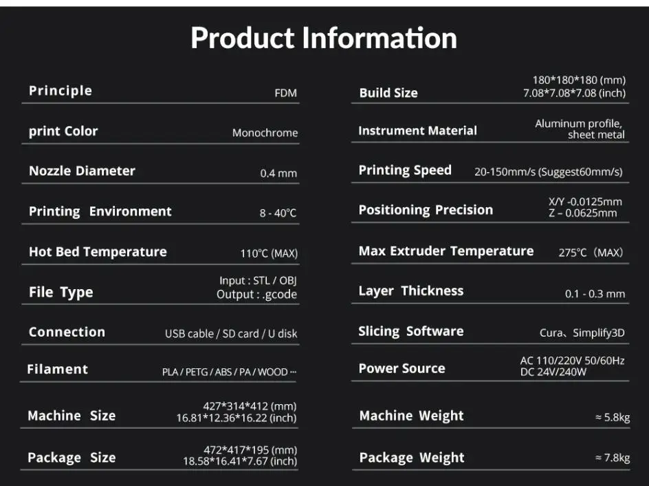 BuildSize:180*180*180mm(7.08*7.08*7.08 inch)
