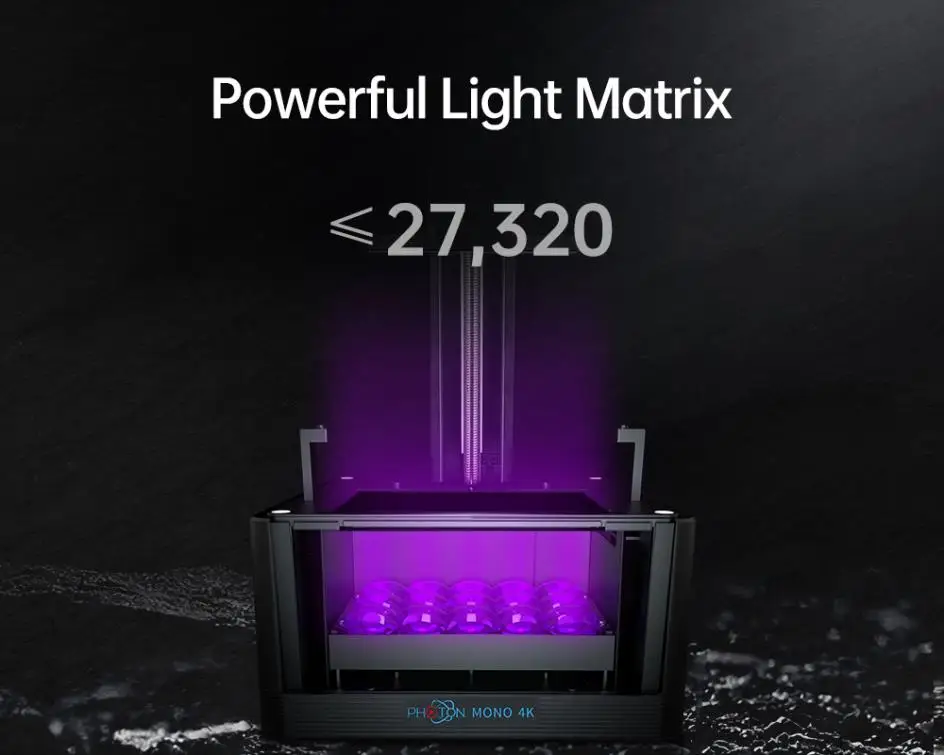 15brightLEDlightsareplacedintoamatrixtomakeupapowerfulandparallellightsource,sothatAnycubicPhotonMono4Kcanprovide>90%lightuniformityand<;27,320luxpowerdensitytoeachlayer,makingfastprintingpossible.