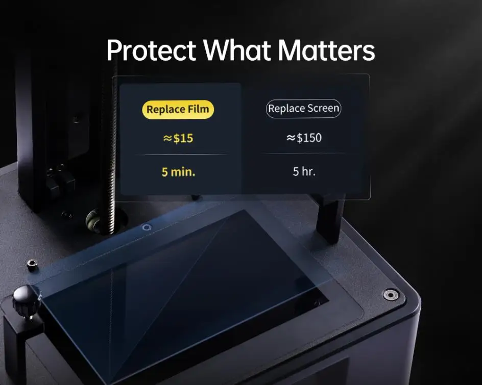 In order to better protect its premium screen,Anycubic Photon Mono 4K added a dedicated and replaceal anti-scratch film above the screen itself,making that expensive screen much more durable than its rivals.