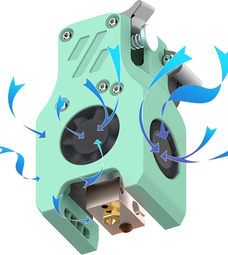2:V6 hotend is customized, the maximum temperature of 350 °, bimetallic throatthree-hole nozzle.