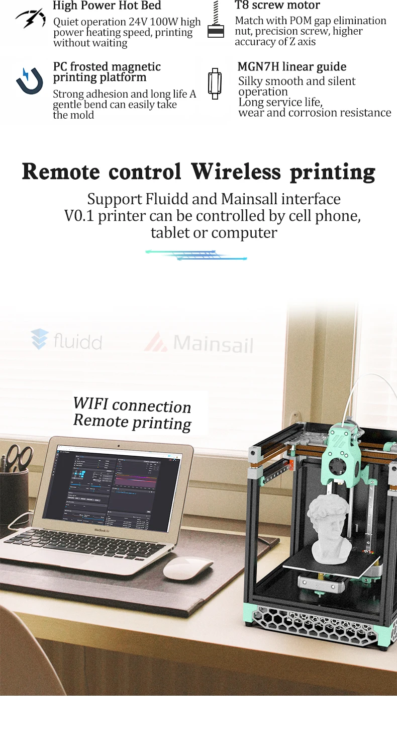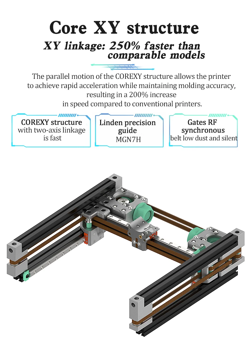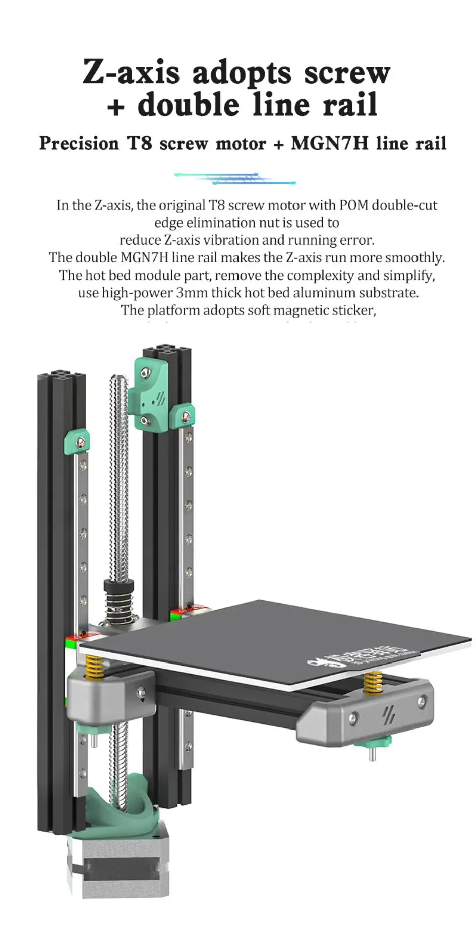 3: Important point: built-in system, the machine is assembled directly into the debugging printing process, support for printing PLA/PETG/ABS/PA and other materials, technical support is provided, no worries.