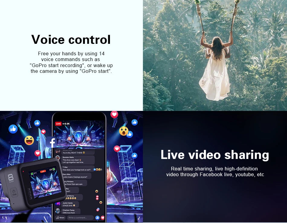 GoPro hero 8 Black stable 4K video 12MP photo portable 1080p live broadcast Motorcycle and Skiing Sports go pro Camera