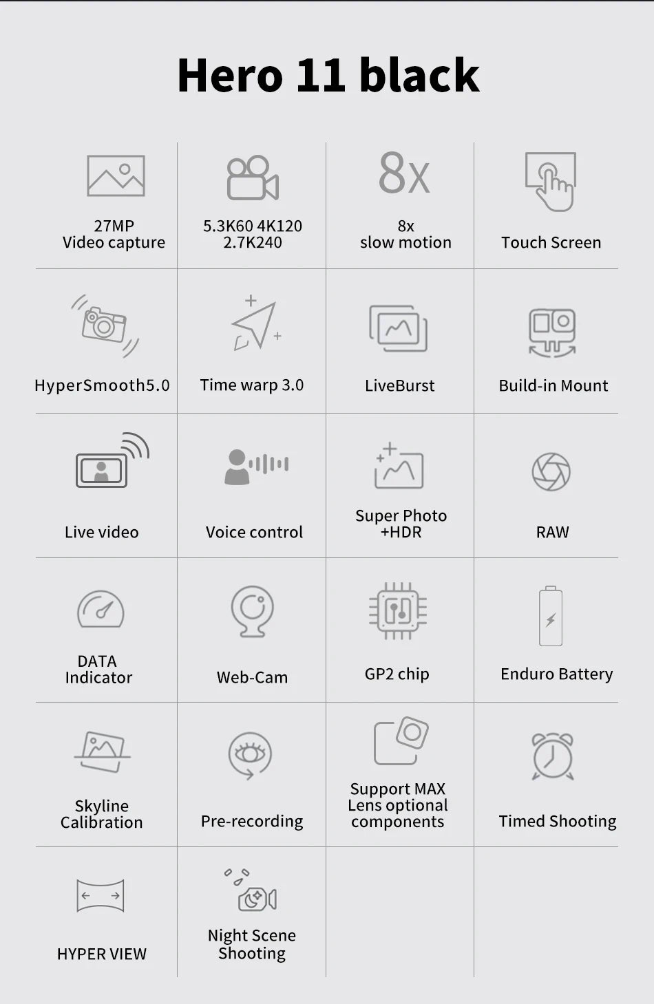 GoPro HERO11 Black Action Camera Hyper Smooth5.0 Cycling Record Mini Night Scene Shooting Helmet camera