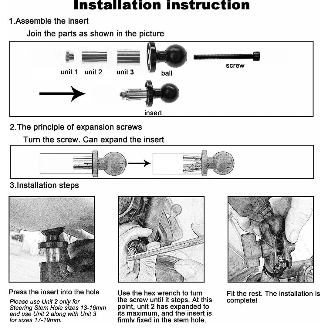 -This bracket install in the Triple Tree Stem Yoke Center hole, can fit to the 13-16mm/16-19mm holes. It adopt the method of expansion to fixed the bracket.