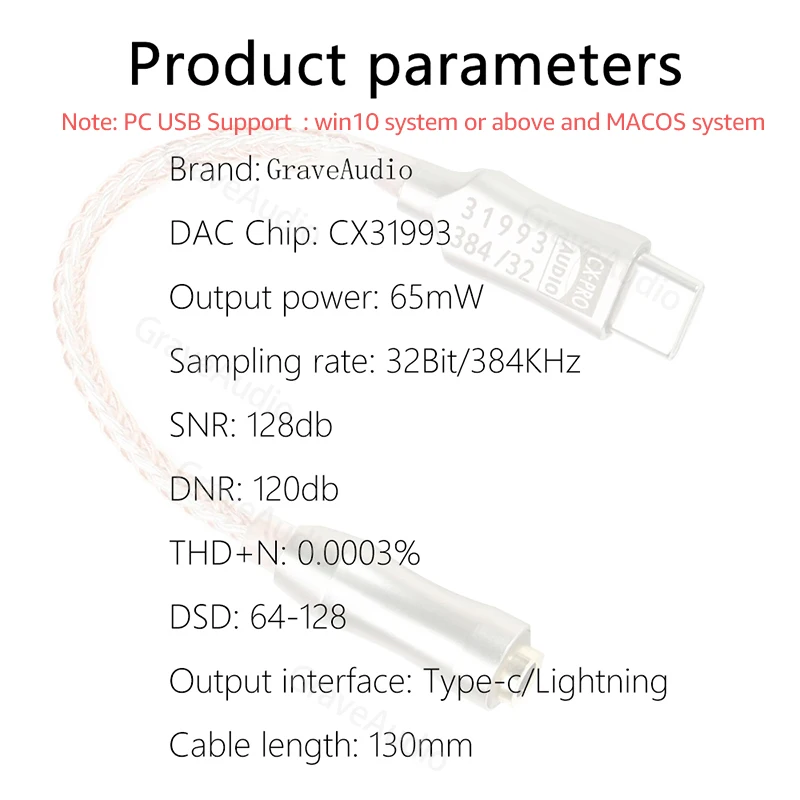 Model Number: GraveAudio DA06 CX31993 HiFi USB DAC Type C To 3.5mm Headphone Amplifi