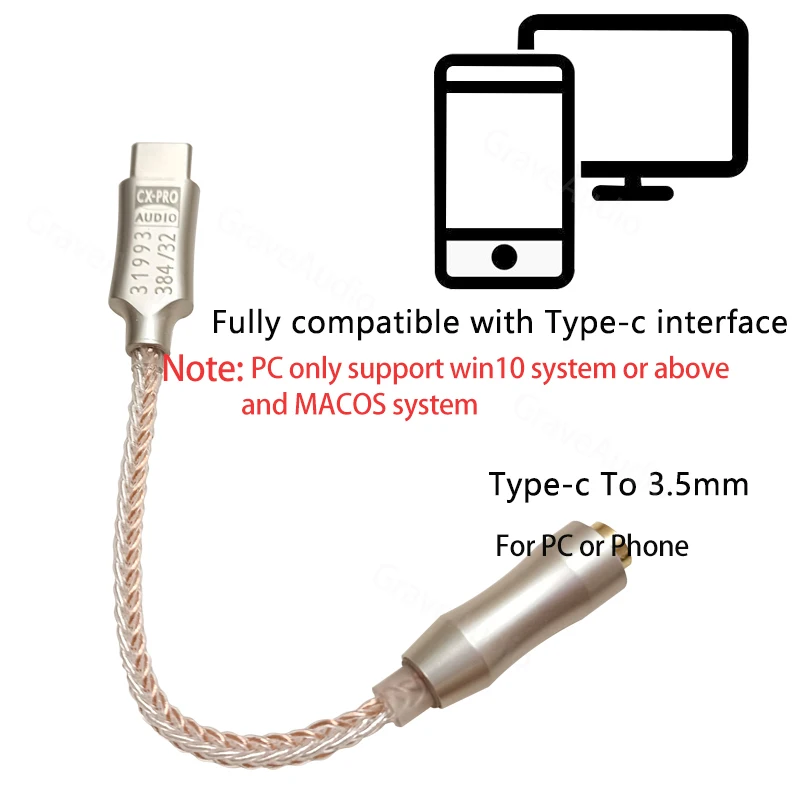 GraveAudio DA06 CX31993 HiFi USB DAC Type C To 3.5mm Headphone Amplifier Audio Decoder IEM AMP Mobile Phone Adapter