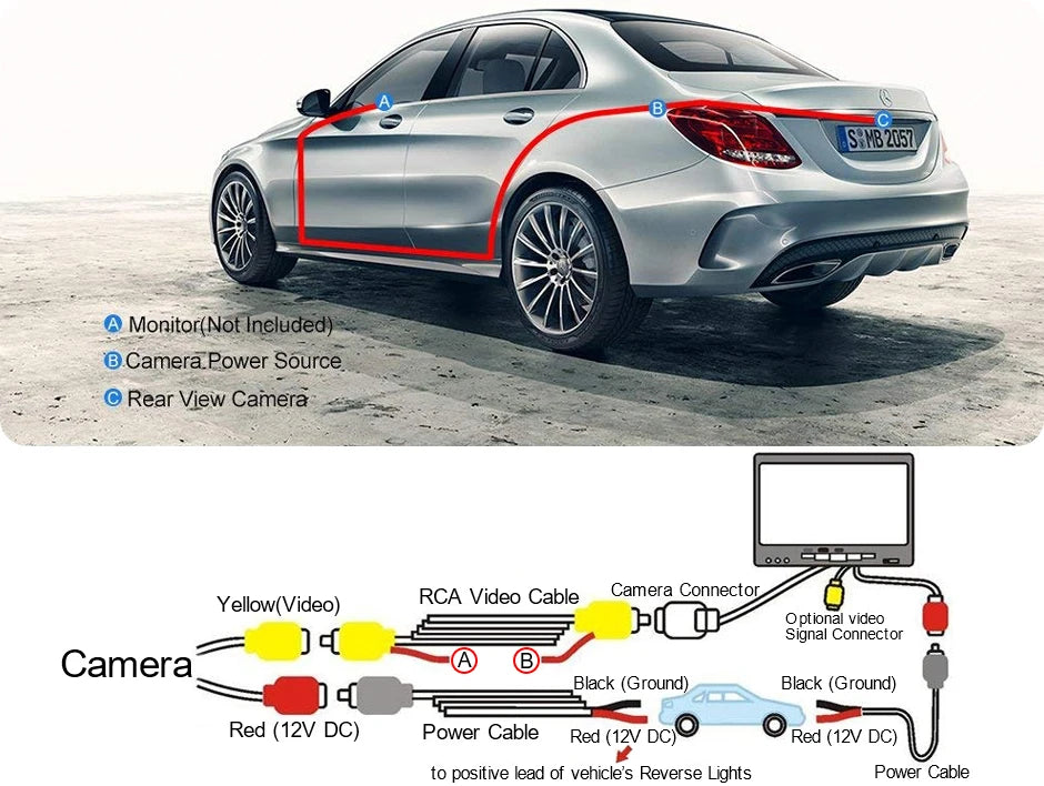 Tips: If the monitor is android dvd or stereo radio, you need 6m cable red trigger wire "A" and "B":