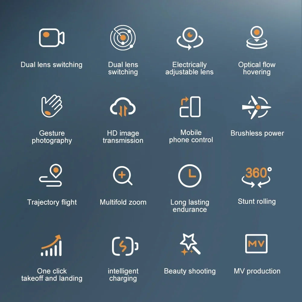 7. Hand gesture photography, optical flow positioning, brushless motor, ultra long endurance, obstacle avoidance head assembly, which can stop when encountering obstacles without colliding with them