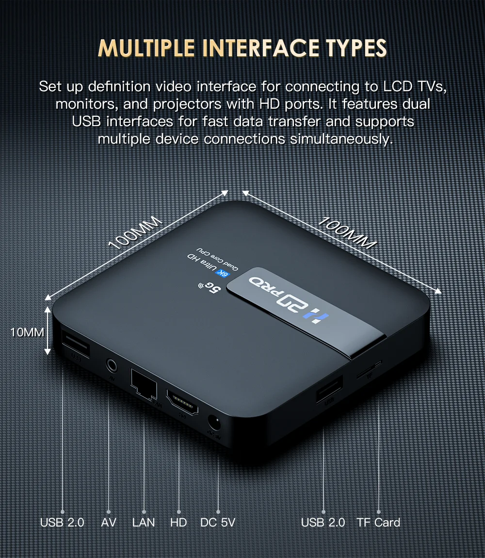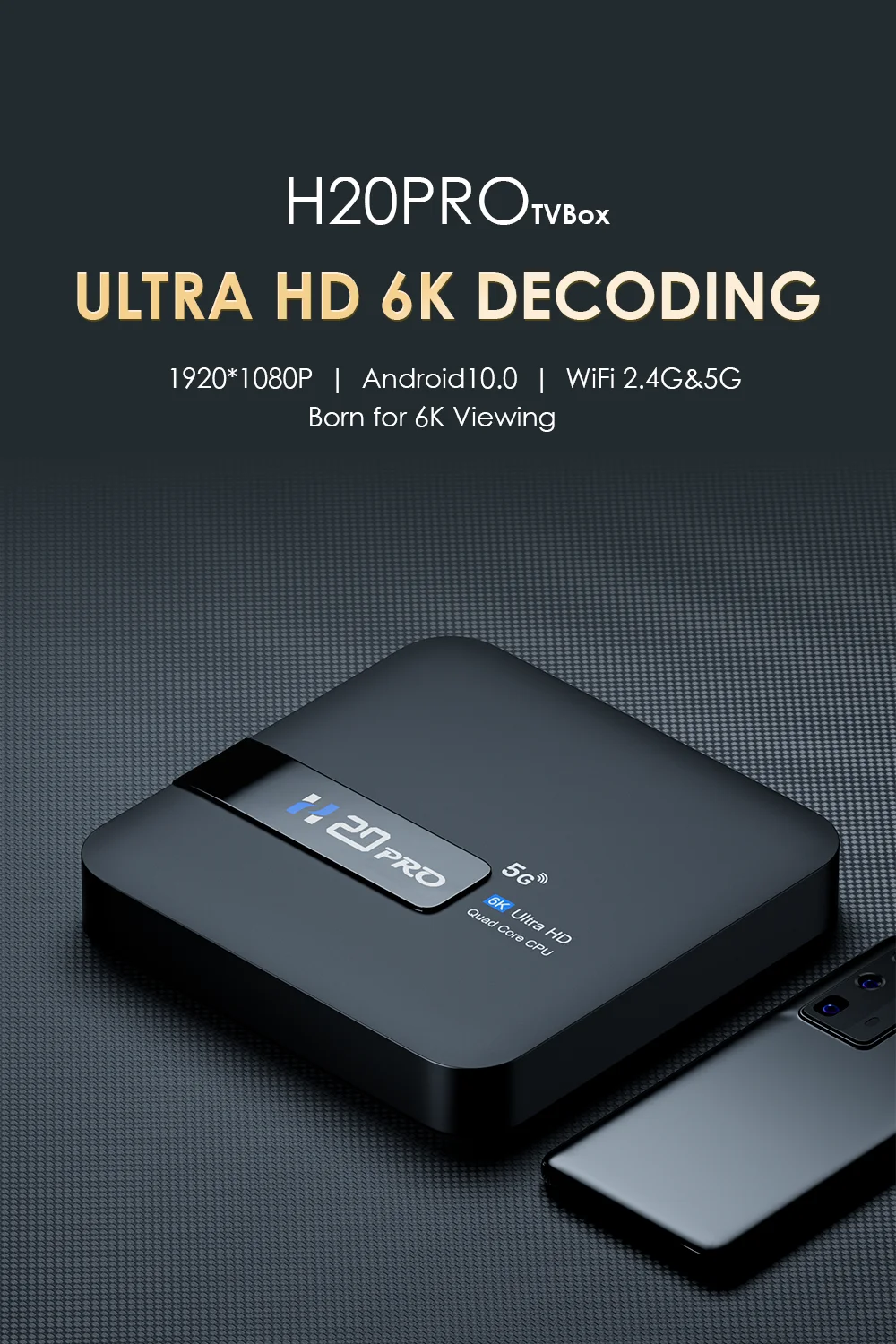 H20PRO Smart Android TV Box Android 10.0 2.4G&5G WiFi 2GB 16GB 4K 6K HD Media Player Android TV Box Play Store 1080P Set Top Box