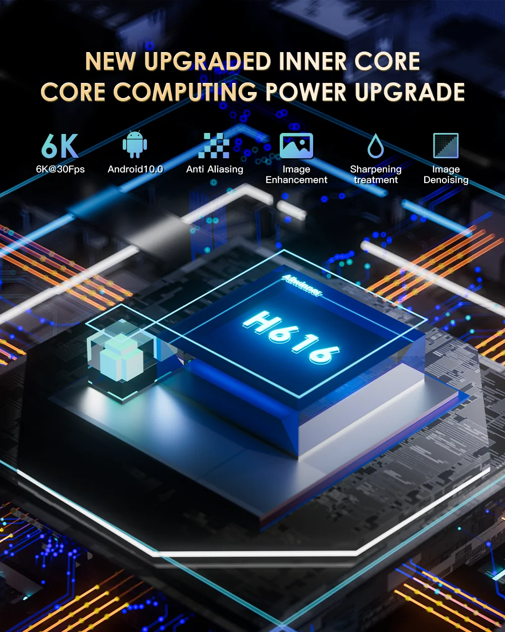 -CPU:Allwinner H616 64bits Quad-Core,- GPU: Mali-G31;