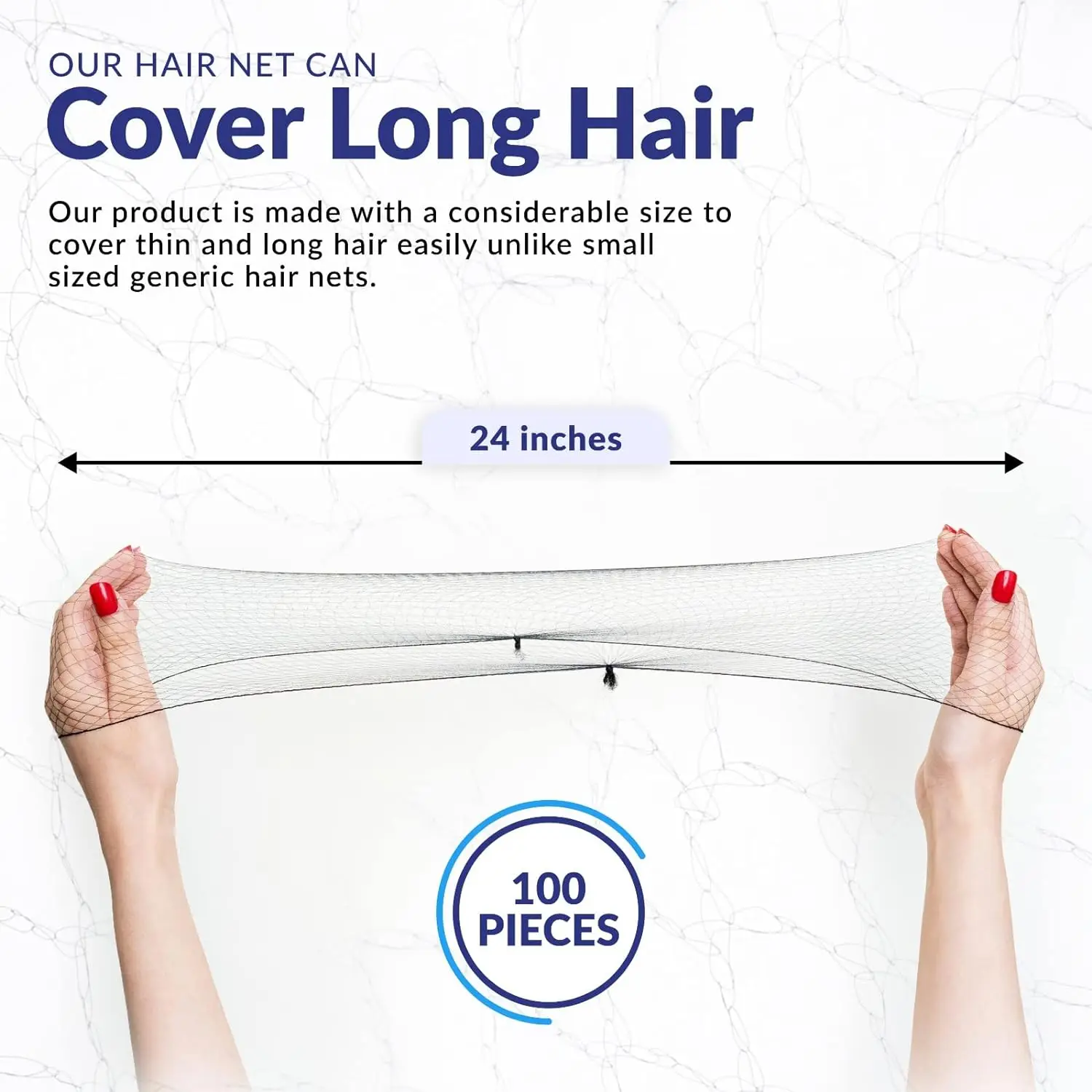 Hair Net 50 Pcs, 24 Inches Hair Nets Elasticity Invisible Elastic Mesh for Food Service, Ballet Bun, Sleeping, Women and Wig