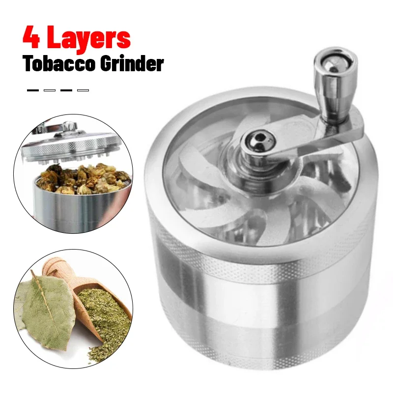 Hand Crank Tobacco Grinder Pollinator Manual Spice Mills 4 Layers Smoke Grass Crusher Muller Smoking Accessories