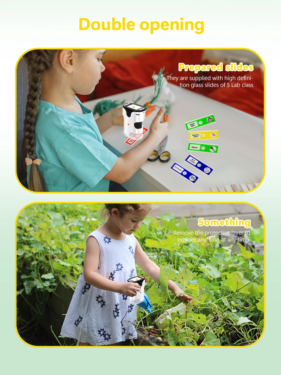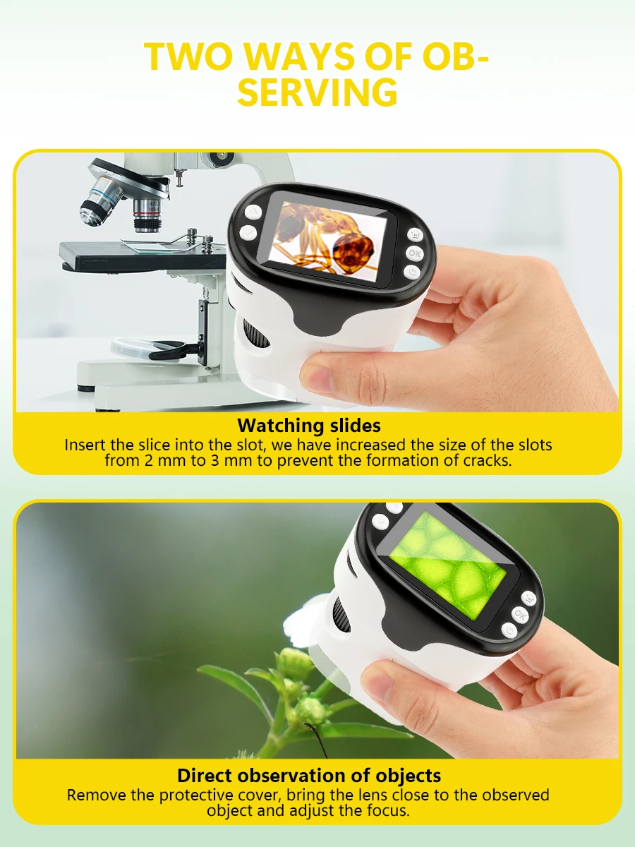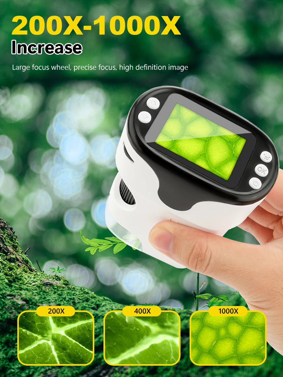 Handheld Digital Microscope For Kids With 2Inch HD Screen Videotape 200-1000X Pocket Microscope Educational Gift For Children