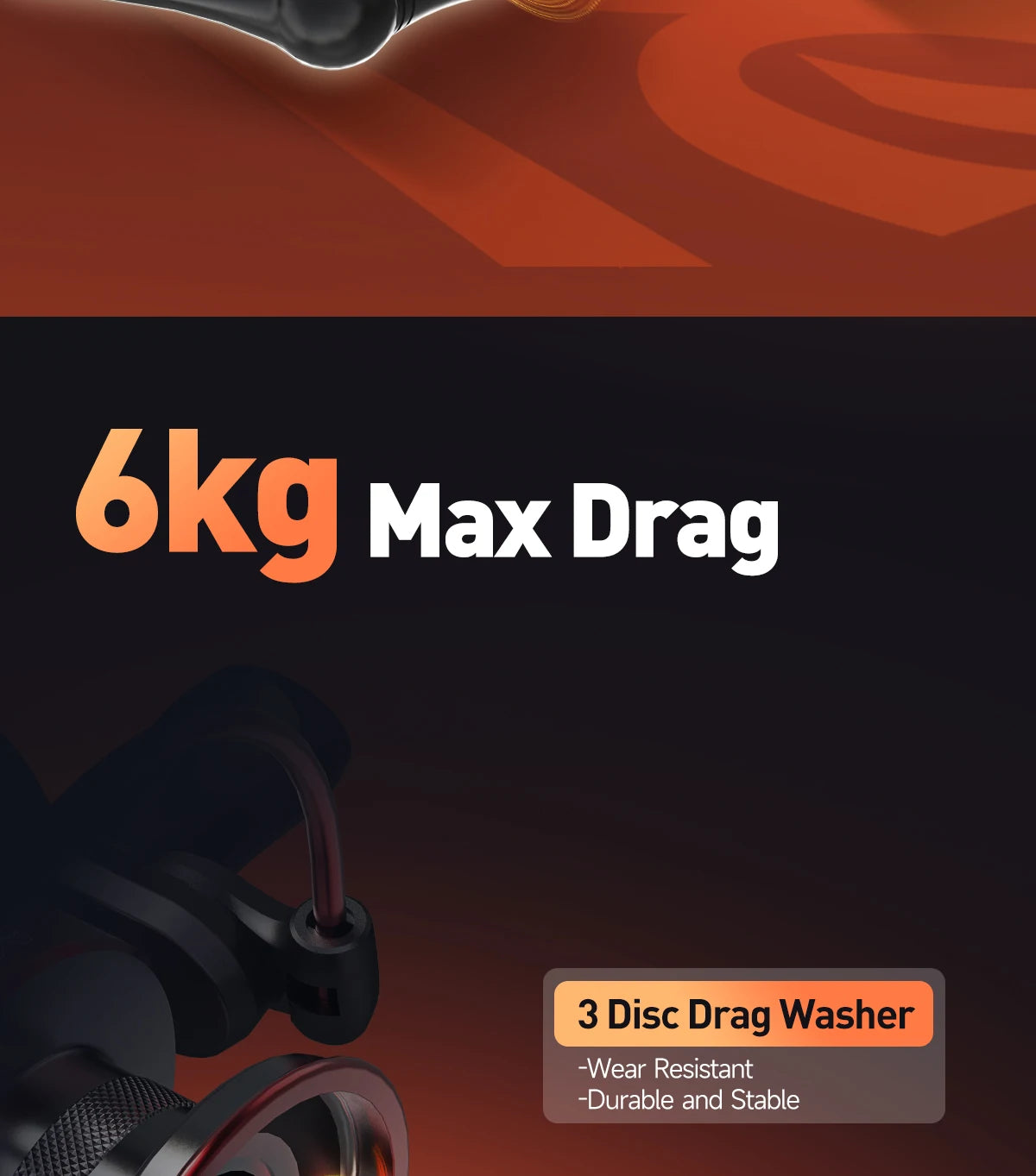 ●Max Drag: 6KG with 3 Disc Drag Washer