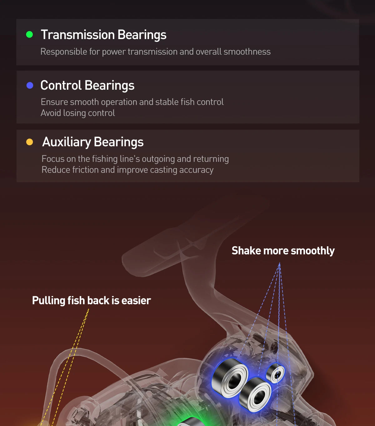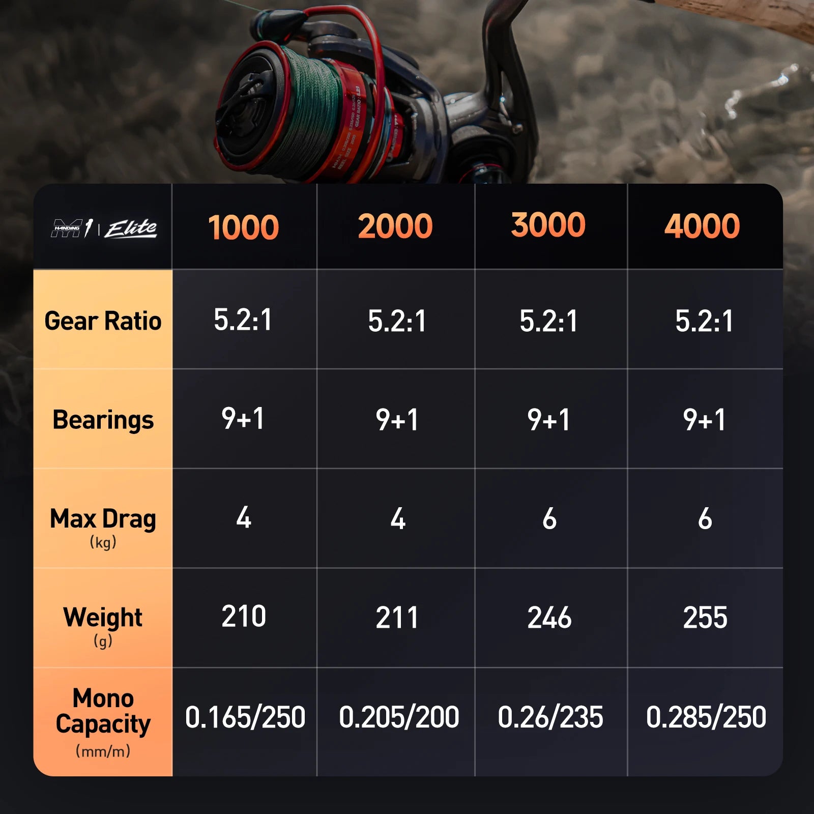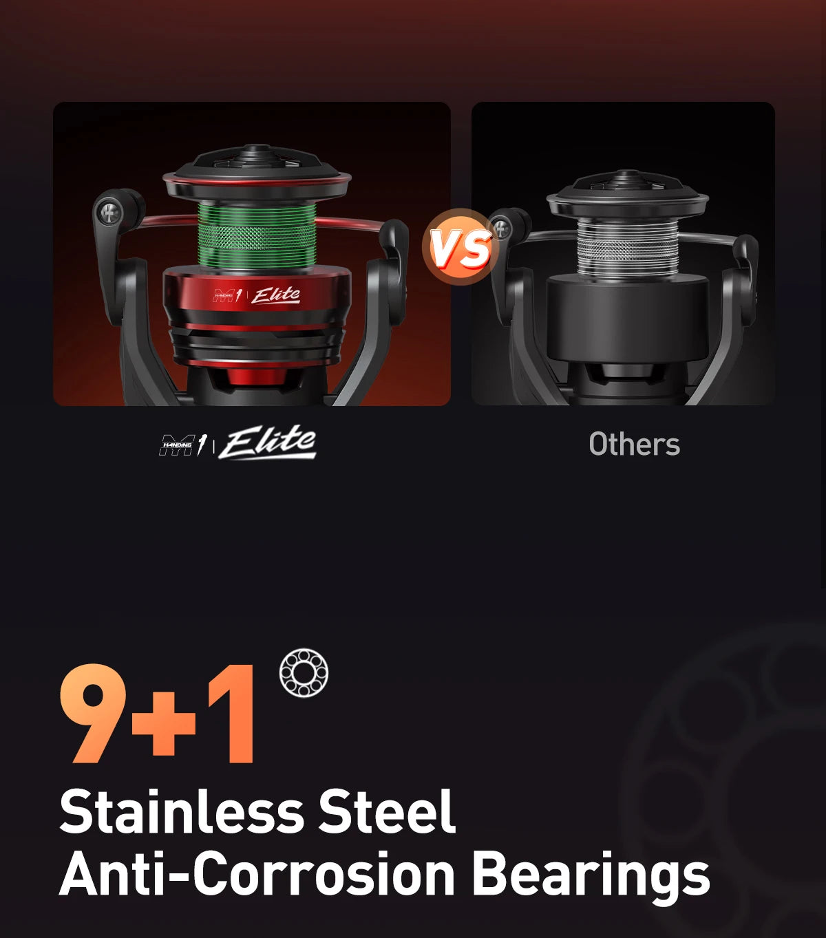 The M1 Elite Spinning Reel, matched the better combination of lightweight, smoothness and durability. With the upgraded slow descent system to make line lay tightly, cast further away. Provide smooth performance for effortless fishing.