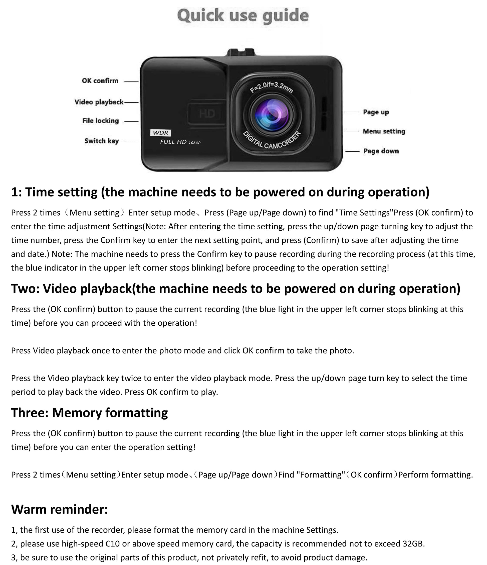 3: Please use the high-speed c10 capacity memory card