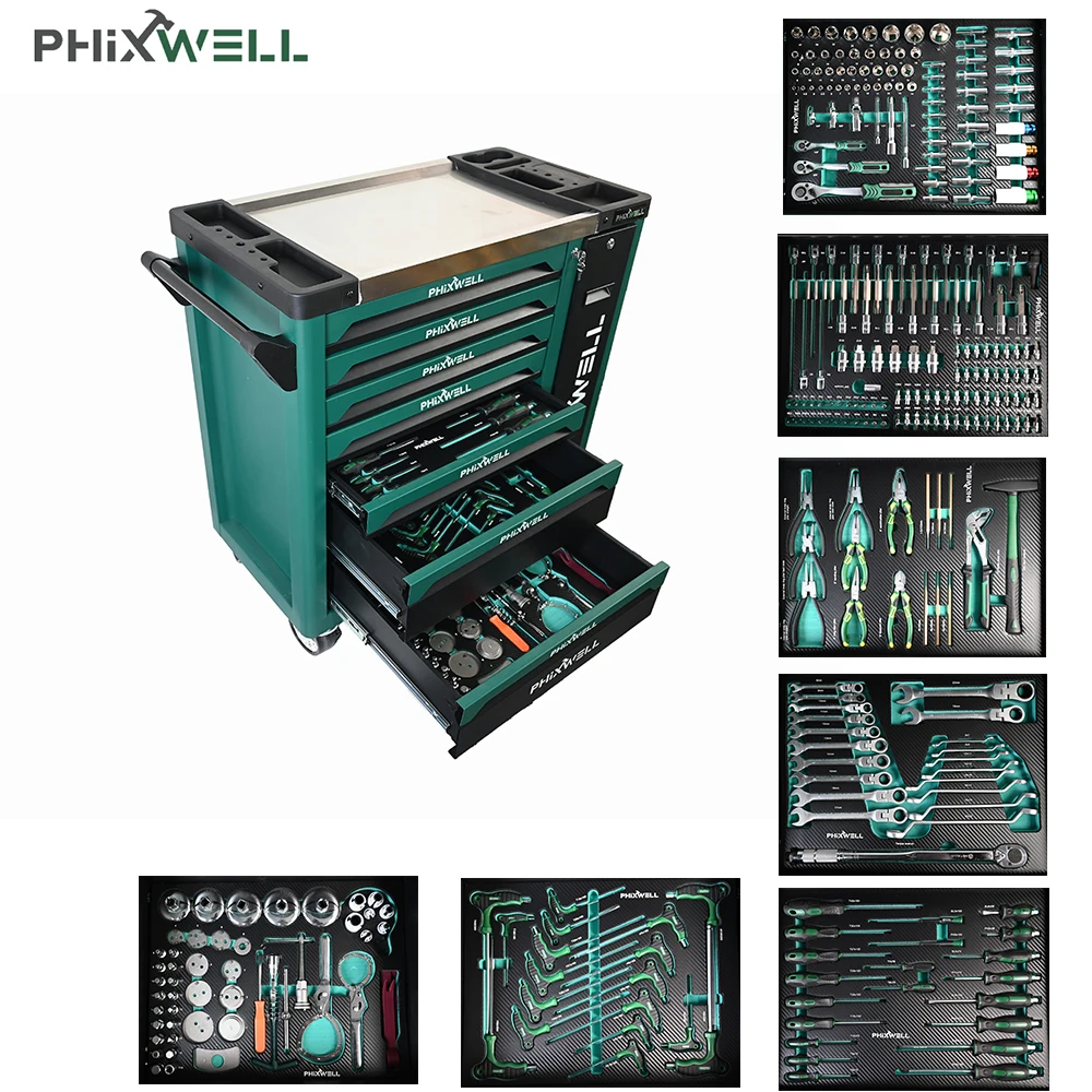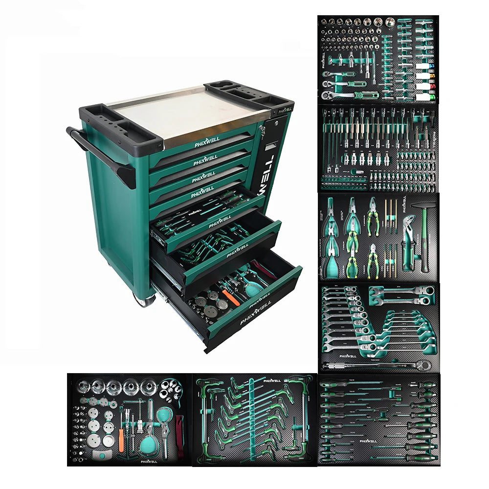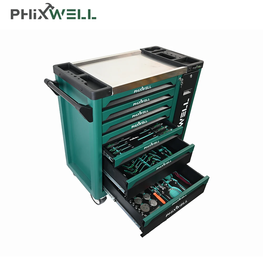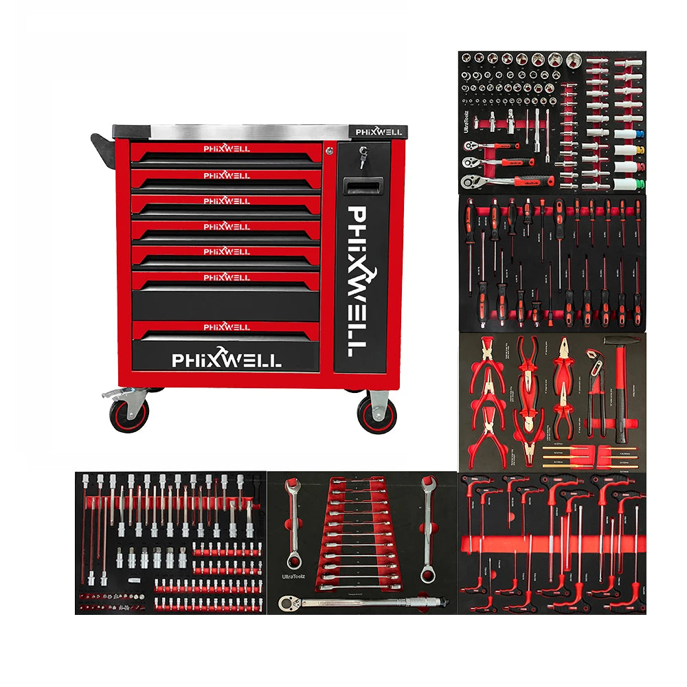 Heavy Duty Metal Iron 7 Drawers Roller Tool Trolley Tool Cabinet With Mechanic Repair Tools