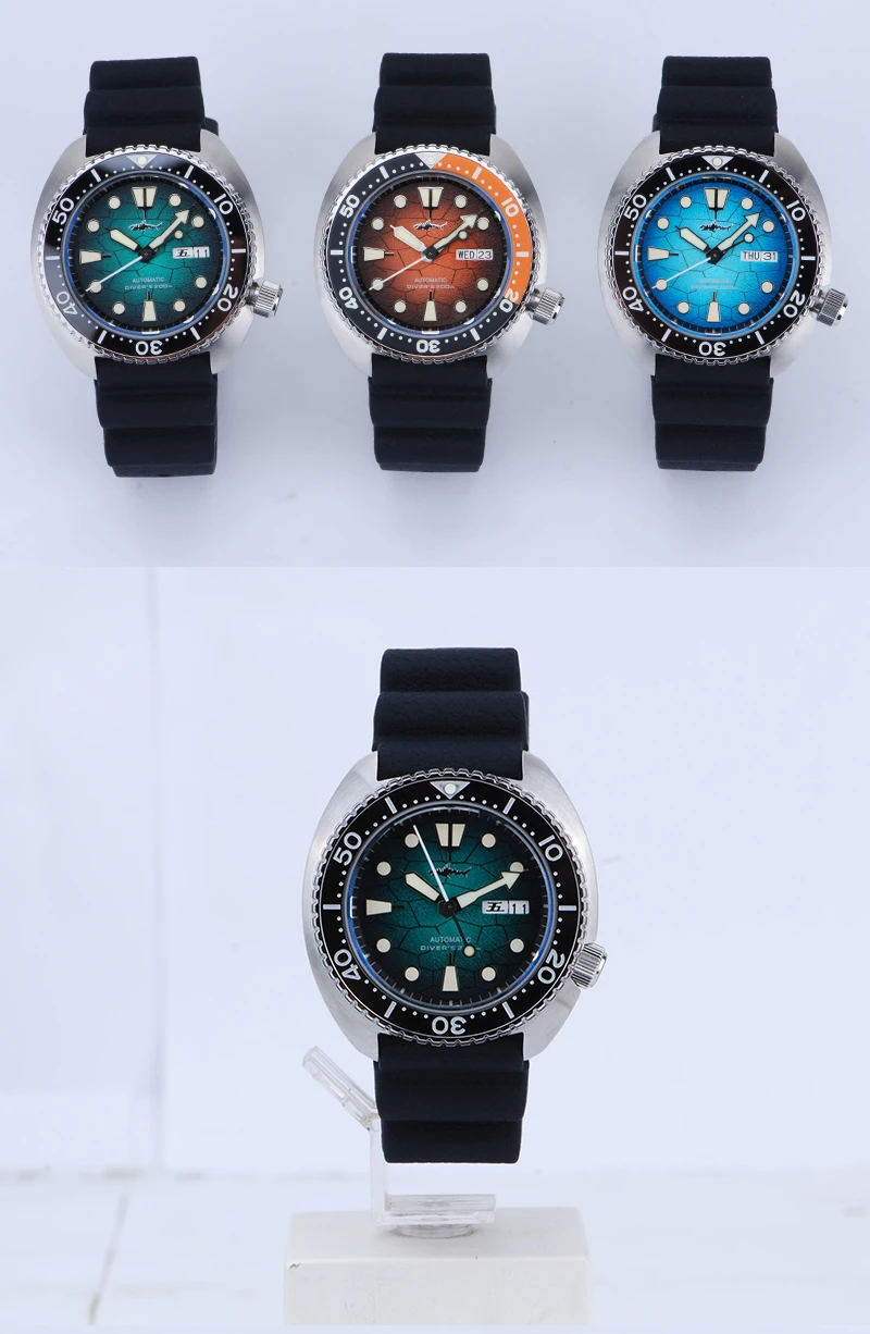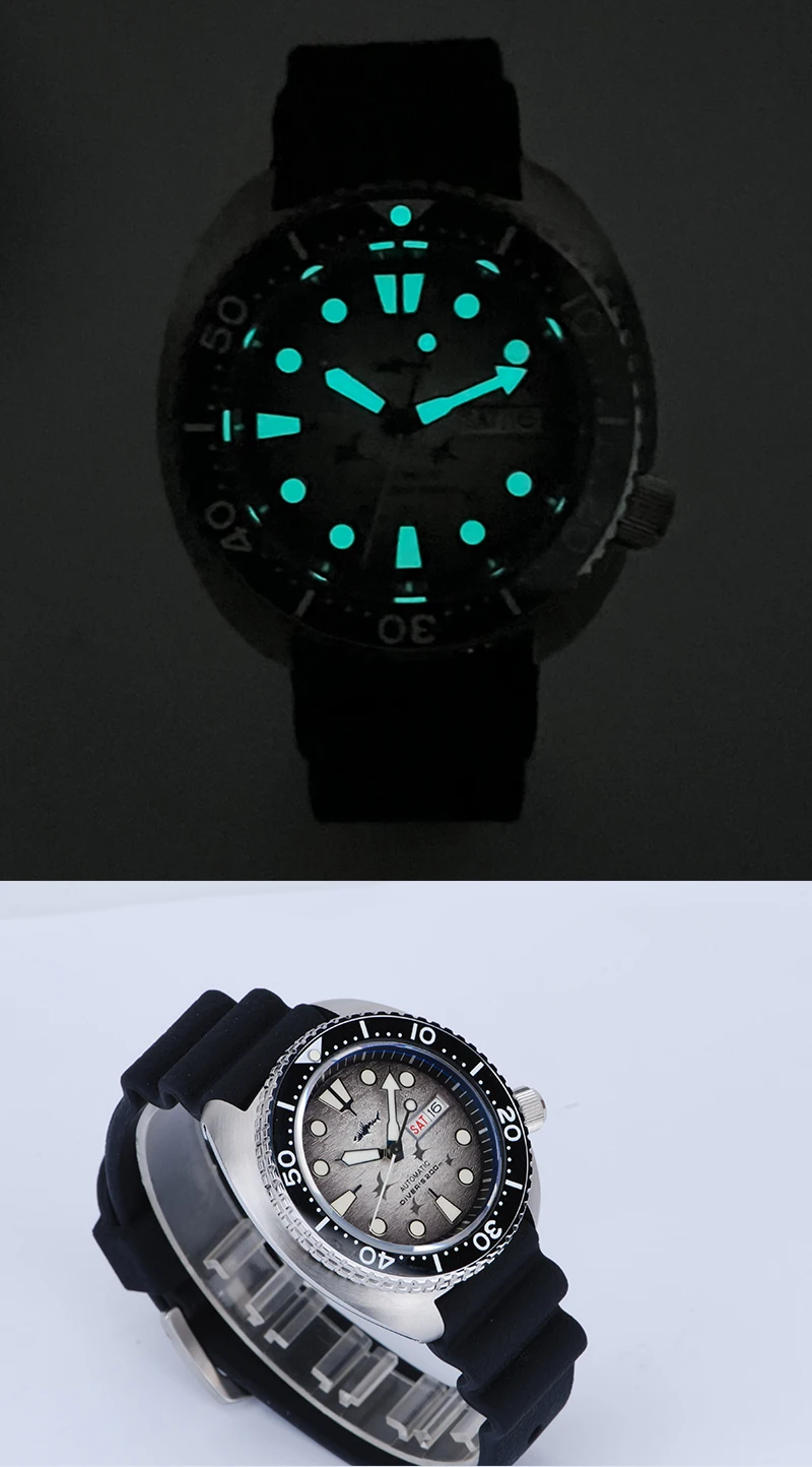 HEIMDALLR Turtle King Mens Diver Mechanica Watch Sapphire 200m Water Resistant 316L Steel C3 BGW9 Luminous NH36 Automatic Watch