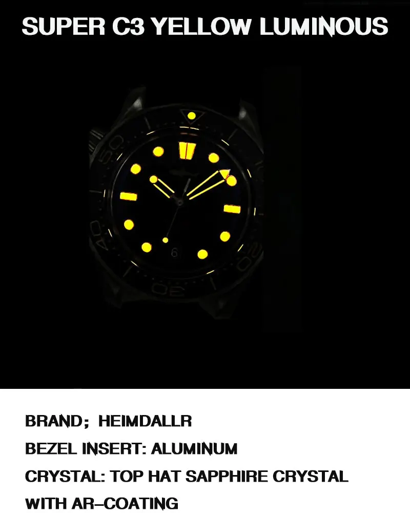 HEIMDALLR Diving Watch NH35A Automatic Mechanical C3 Luminous Black Blue White Dial Titanium Sea Ghost 200M Steel Nylon Strap