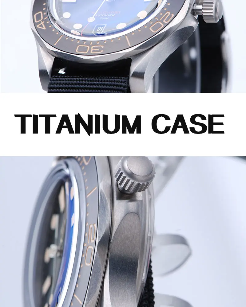 Heimdallr Watch Titanium Sea Ghost NTTD NH35 Automatic Mechanical C3 Luminous Steel Nylon White Black Dial 200M Dive Watches Men