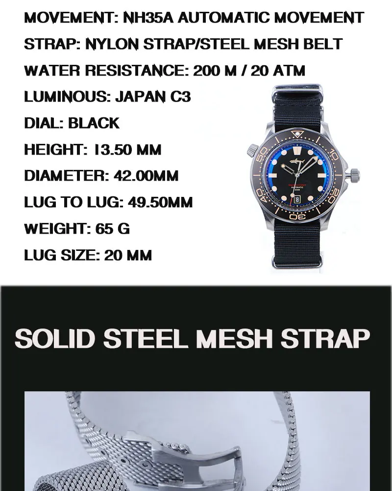 • 200M Dive Watch :With a water resistance depth of 200Bar, this watch is perfect for diving and other water activities.