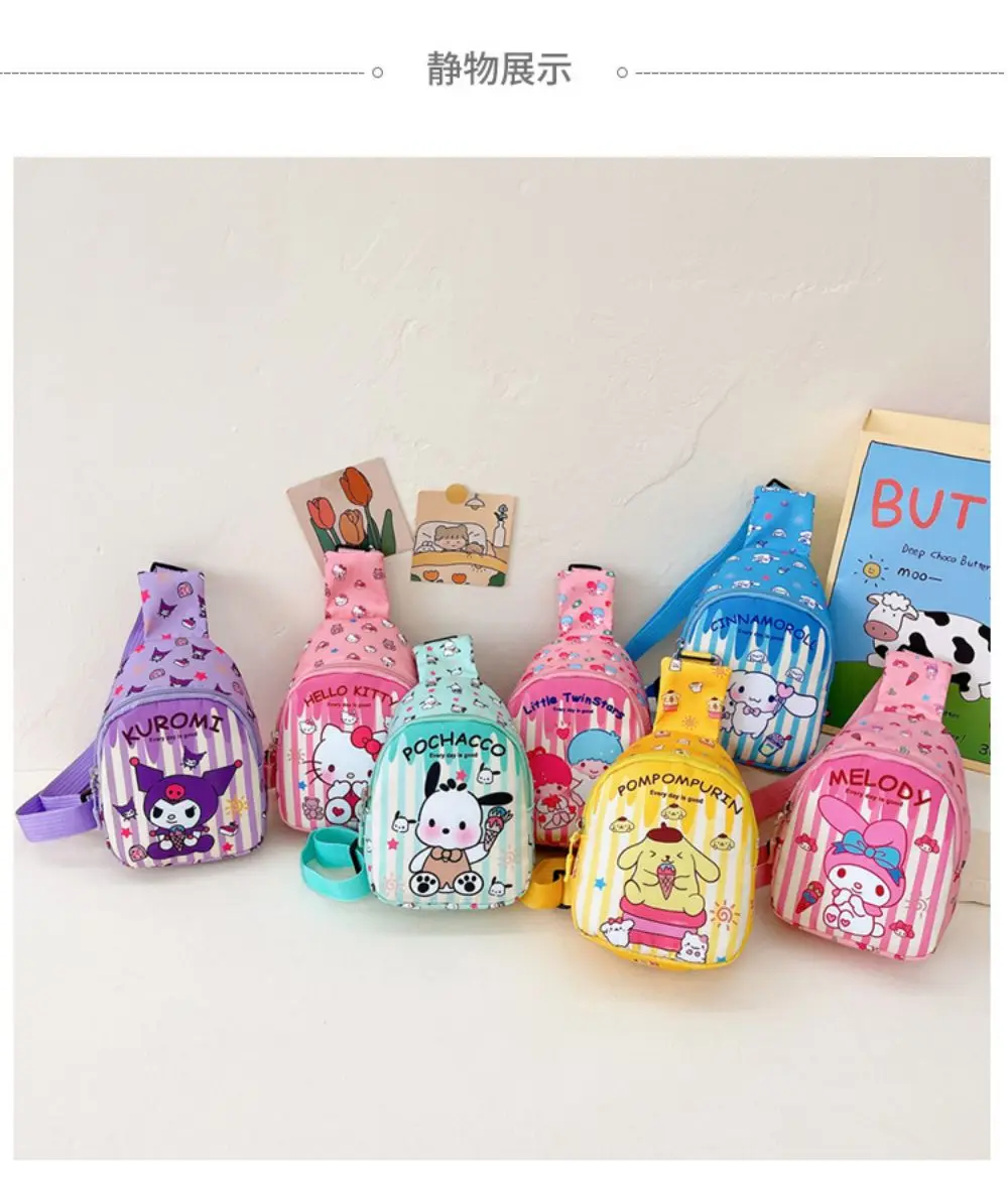 Hello Kitty Children Chest Bag Sanrio figure Kuromi Cute Coin Purse Shoulder Bag Boy Girl Cross Body Bag Fashion Messenger Bag
