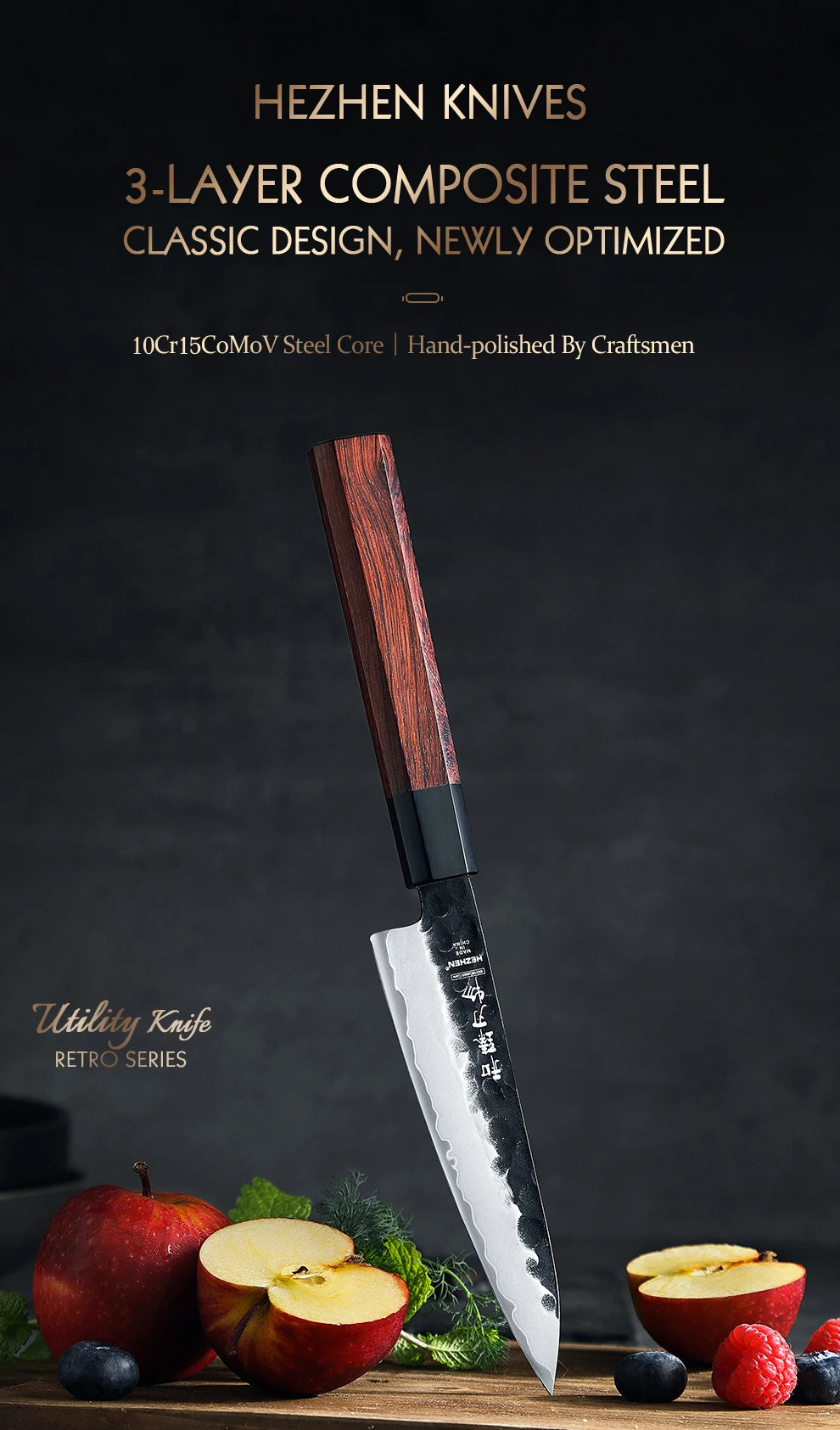 HEZHEN 5.5 Inches Utility Knife Stainless Steel Kitchen Cooking Knives Rosewood Handle With Gift Box Three-layer Composite Steel