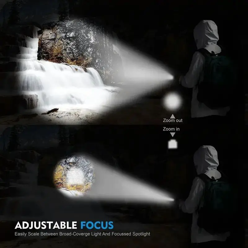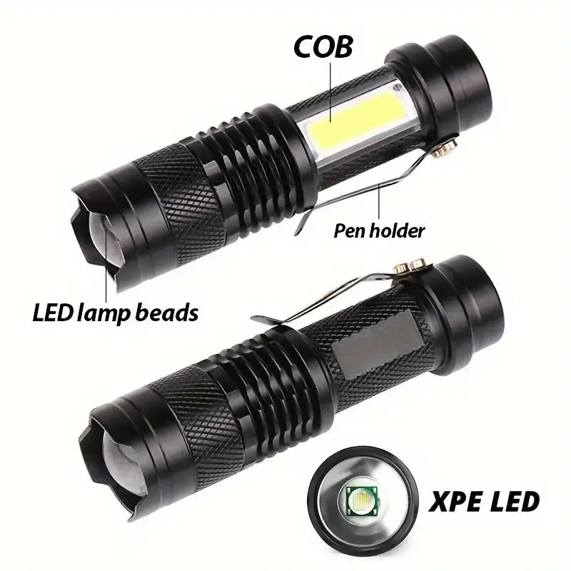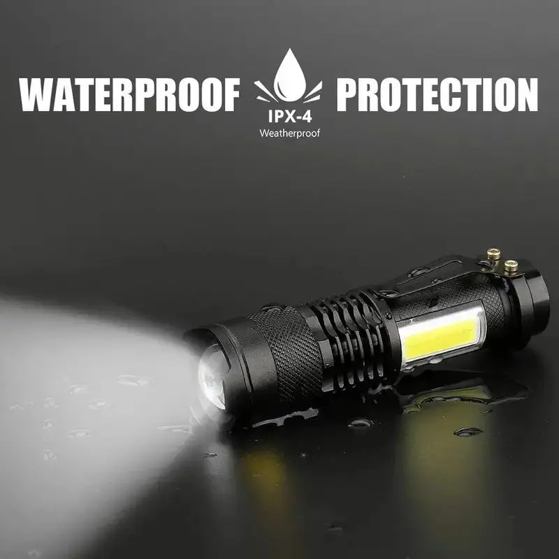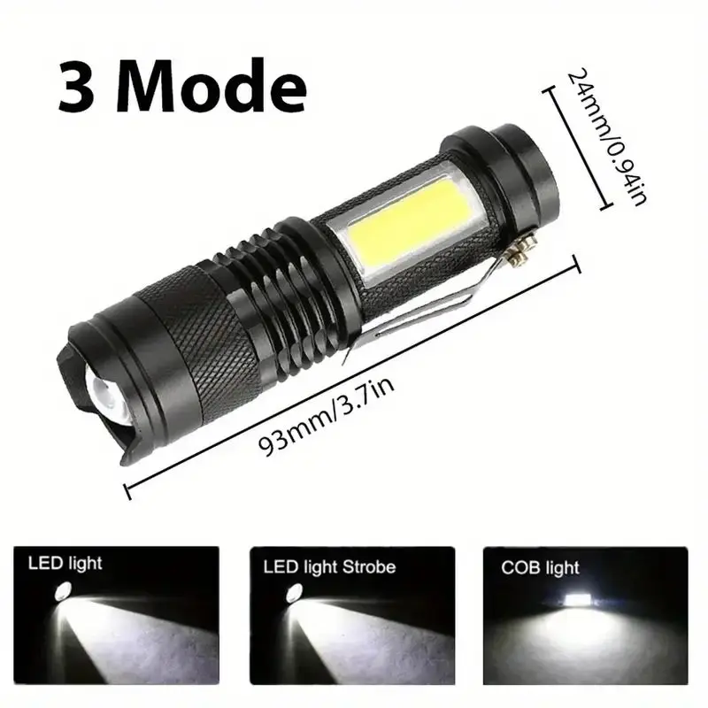 High Power LED Flashlight Rechargeable Zoom Strong Camping Outdoor Torch Aluminium Alloy With Battery COB Side Lights 3 Modes
