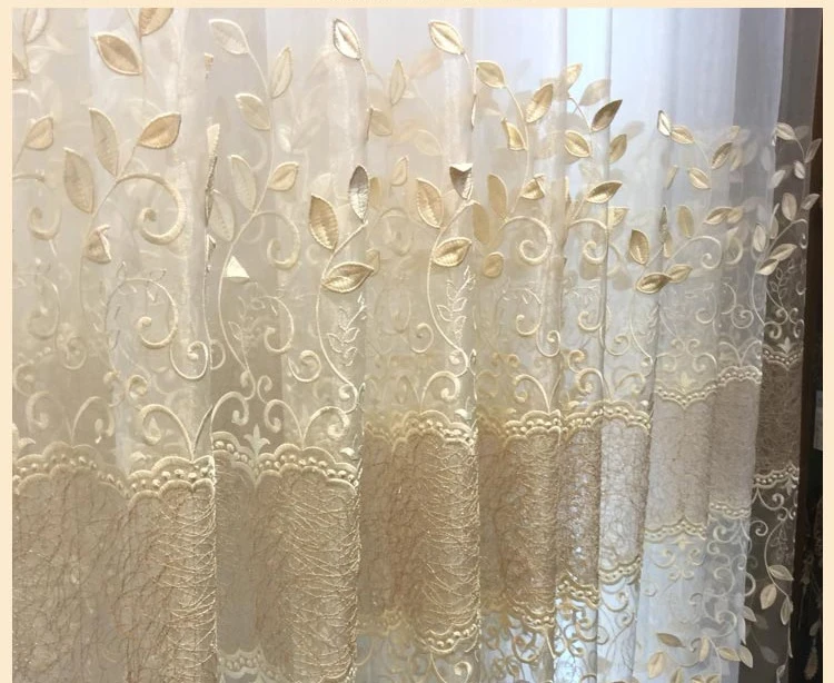 High Precision Embroidered Gauze Curtain with Embossed Leaves Curtains for Living Dining Room Bedroom