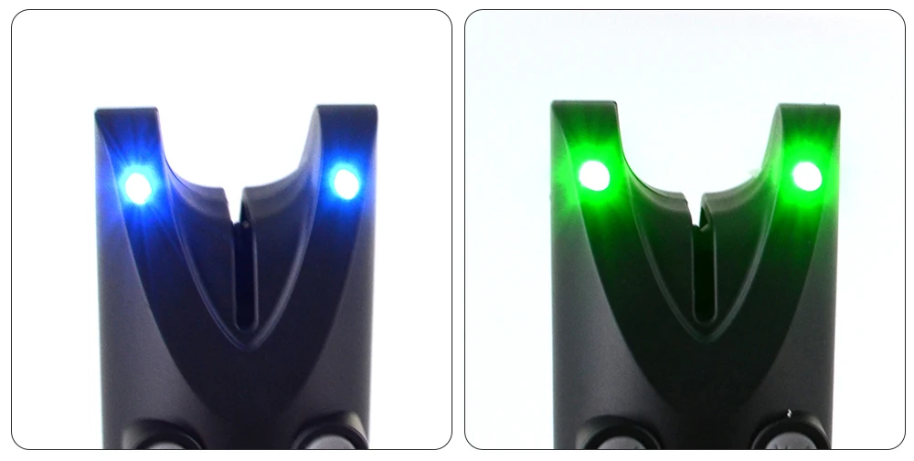 3.Green/Blue LED-Lights match 2 fishing alarms