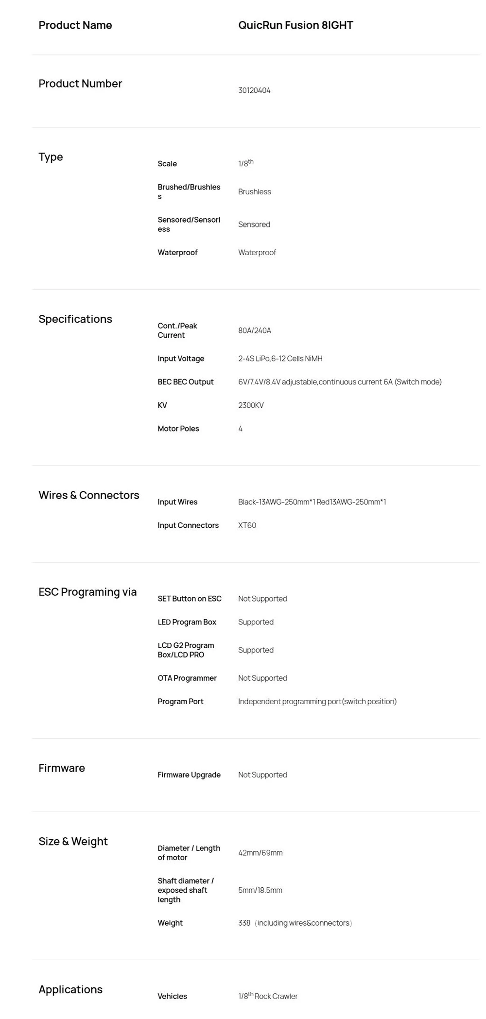 Hobbywing Quicrun Fusion 8ight 2-in-1 80a 2300kv Brushless Sensored Motor Esc Integrated For 1/8 Rc Car Rock Crawler Power Syste