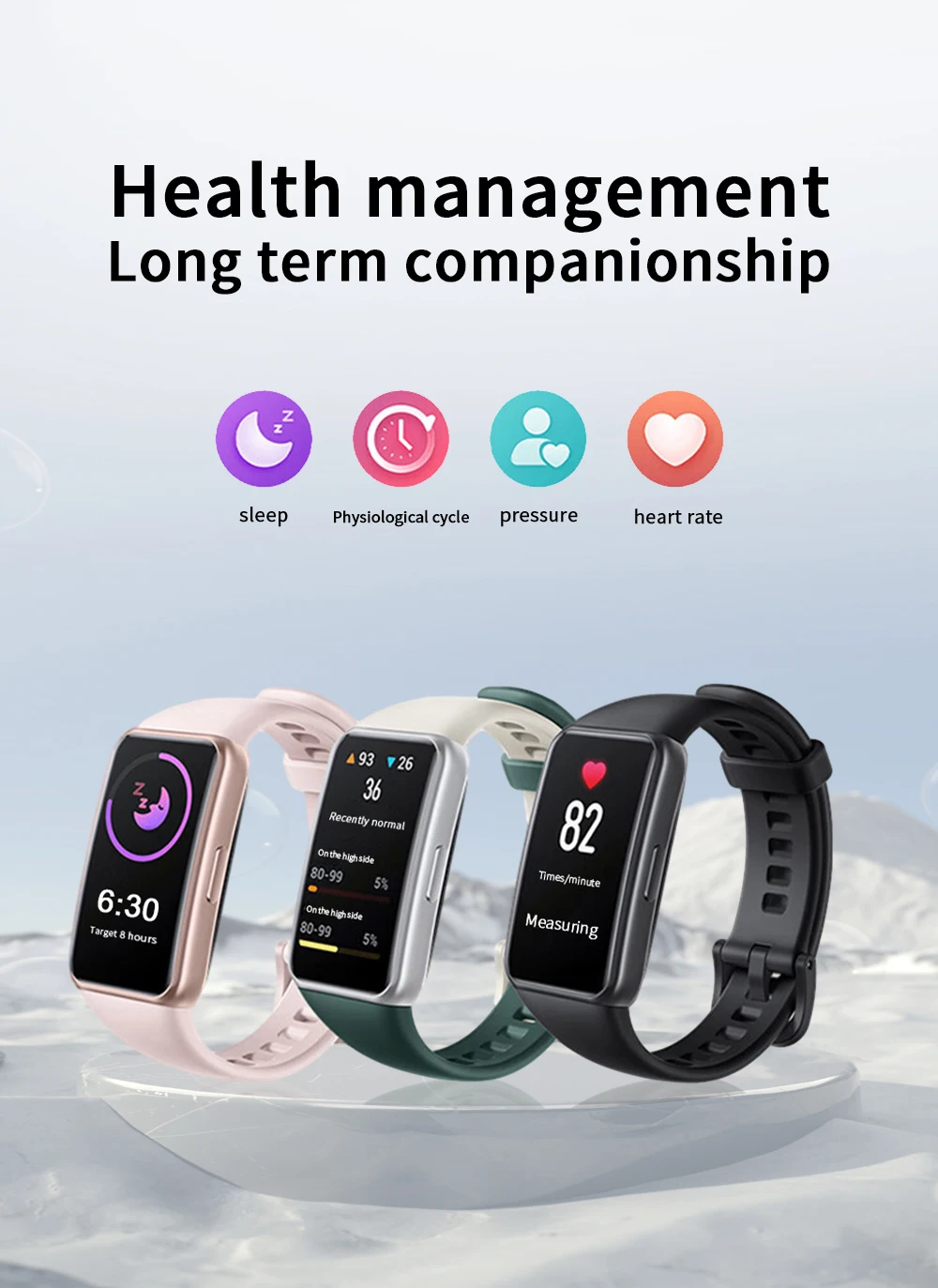Health Monitor:Accurately record your heart rate, blood oxygen, sleep data and management of female menstrual cycles. Vibration alert for low blood oxygen, All-day blood oxygen tracker, helping you adjust yourself for a healthier life-style.