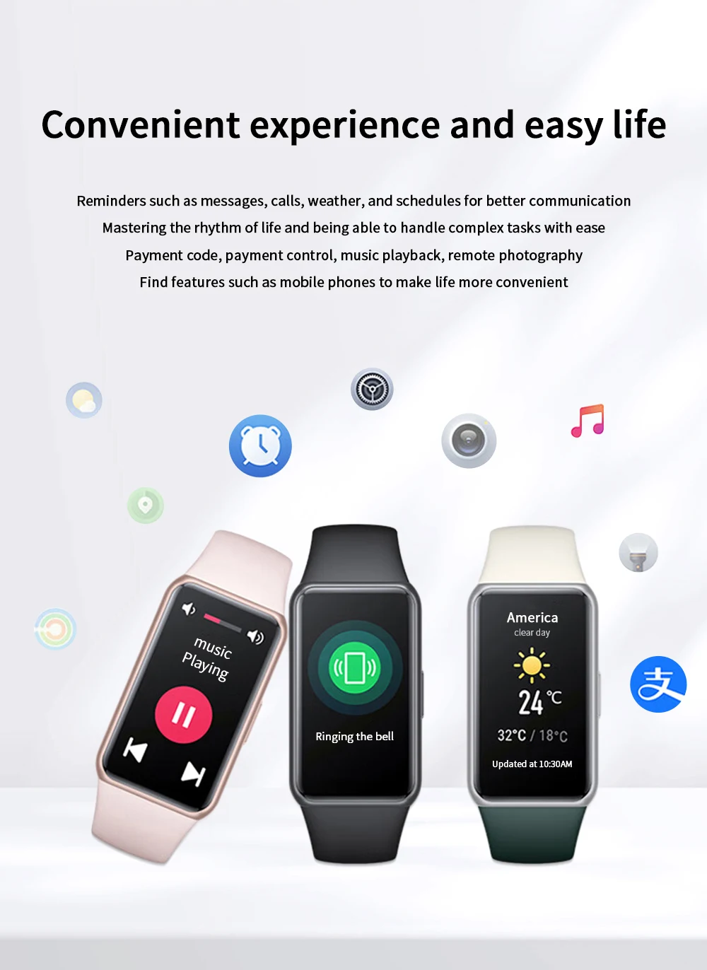 Smart Reminder:After connected to the phone, it will provide synchronous display of message, call or social APP to remind you of important information.