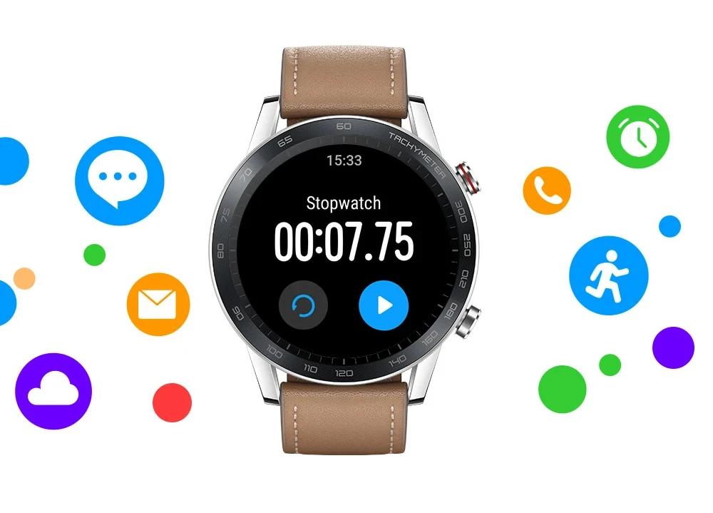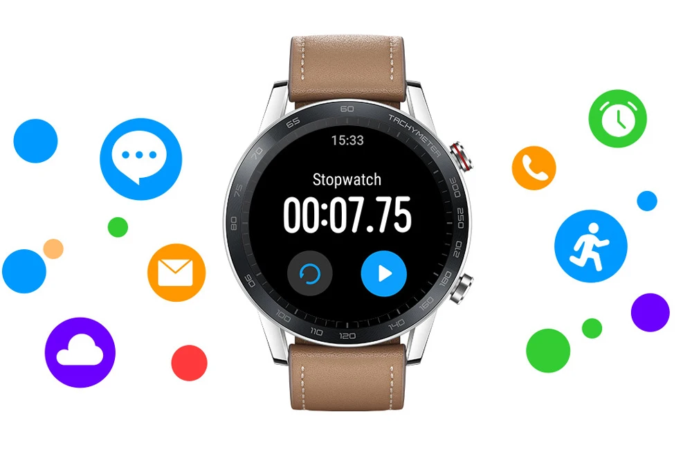 Continue to live in the moment. At your convenience, MagicWatch 2 lets you access commonly used smartphone features like checking the weather app, setting the alarm, or starting the stopwatch timer, all without even touching your HONOR smartphone