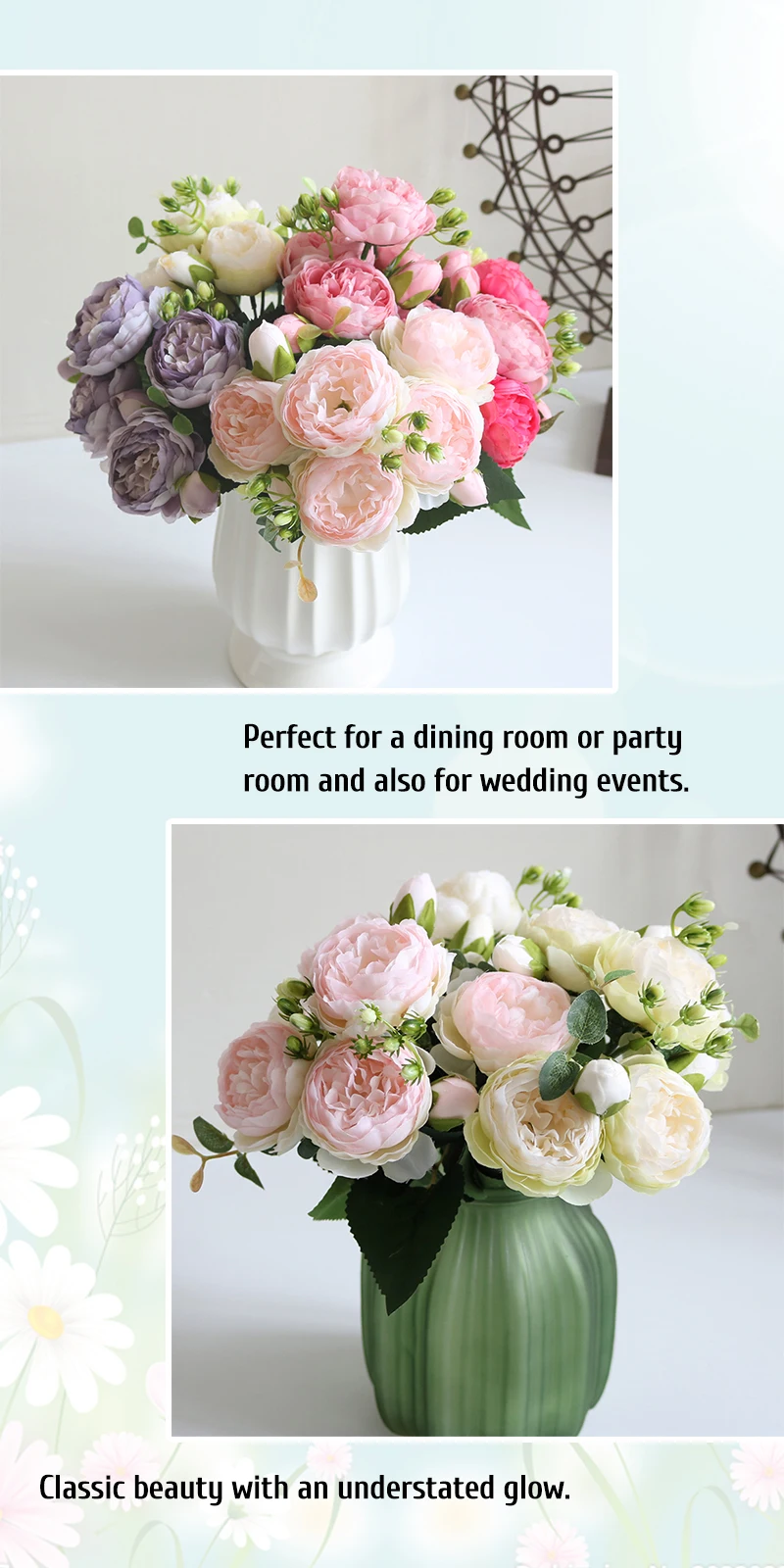【Wide Use】Suitable for home decoration, table centerpiece, DIY flower arrangement, wedding, party, hotel decoration, etc. It can easily meet your flower needs.