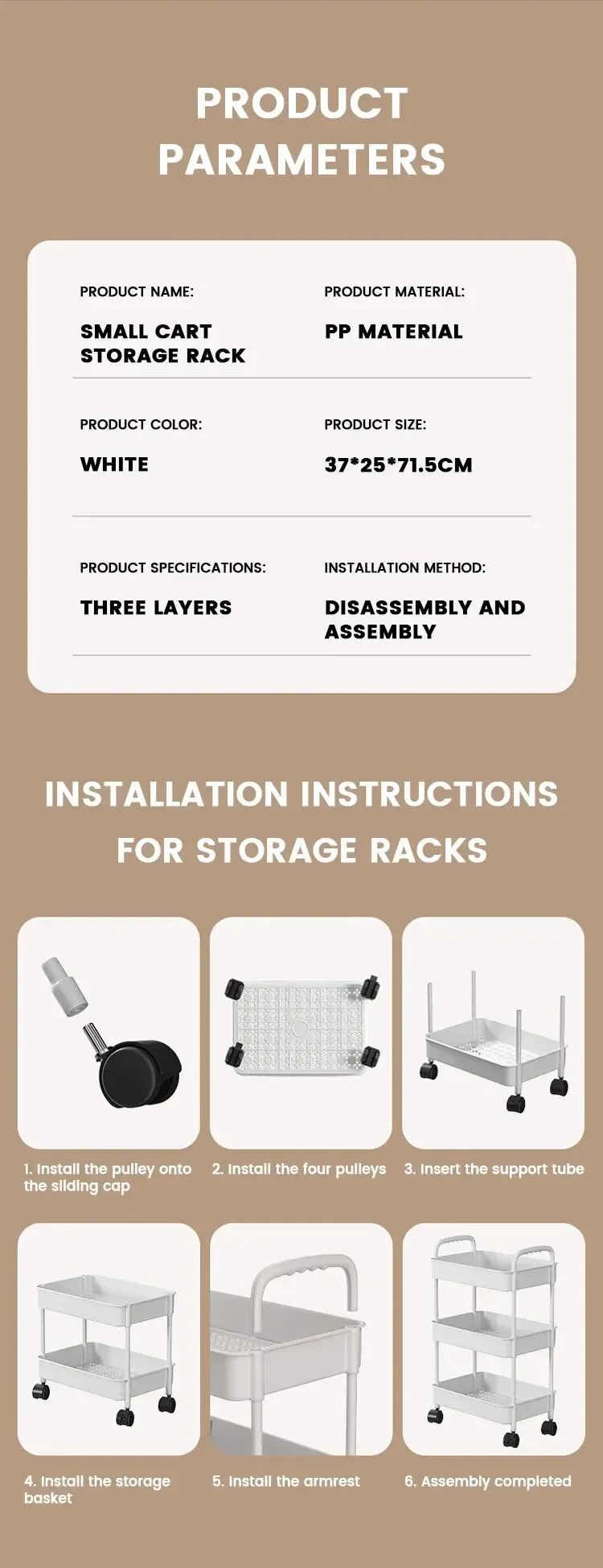 Household Multi-layer Small Cart Storage Rack Floor To Floor Kitchen Bedroom Bathroom Storage Rack Storage Rack With Wheels