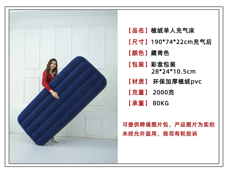 Household Simple Navy Blue Inflatable Mattress Foldable Inflatable Nursing Bed Outdoor Garden Lazy Inflatable Sofa with Air Pump