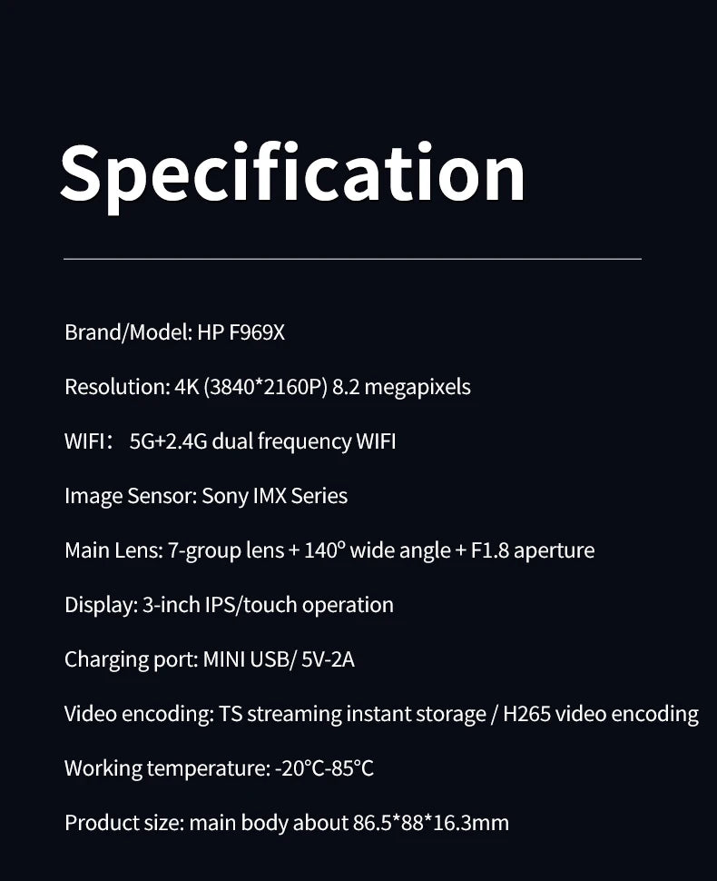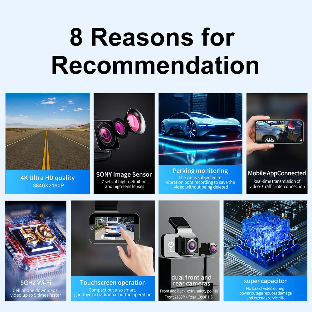 HP Dashcam F969X 4K 2160P car camera HD night vision parking monitoring car WiFi Car DVR video recording