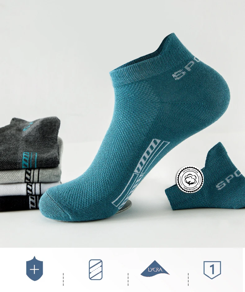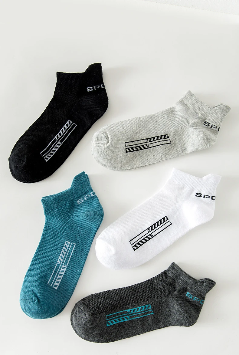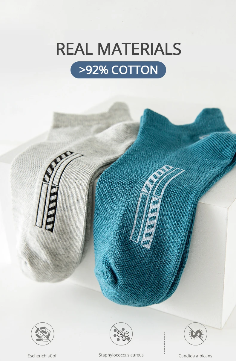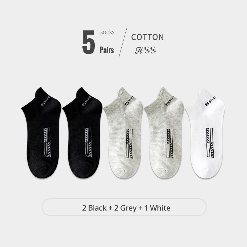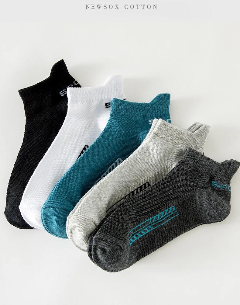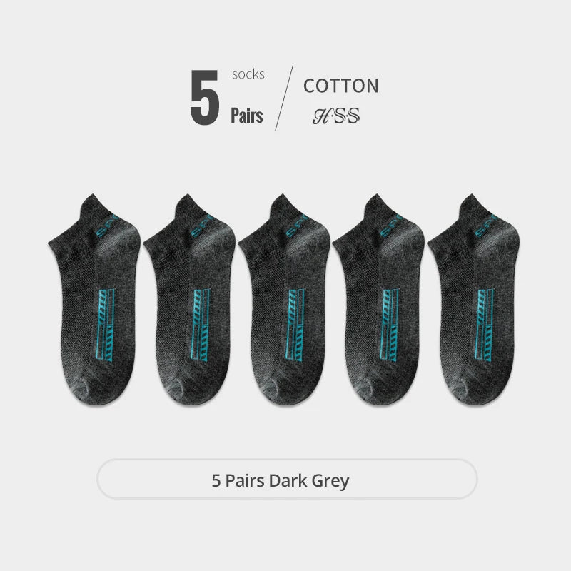 HSS 5Pairs Organic Cotton Men Socks Ankle Breathable Mesh Sports Sock Casual Athletic Summer Thin Short Sokken Plus Size EU40-46