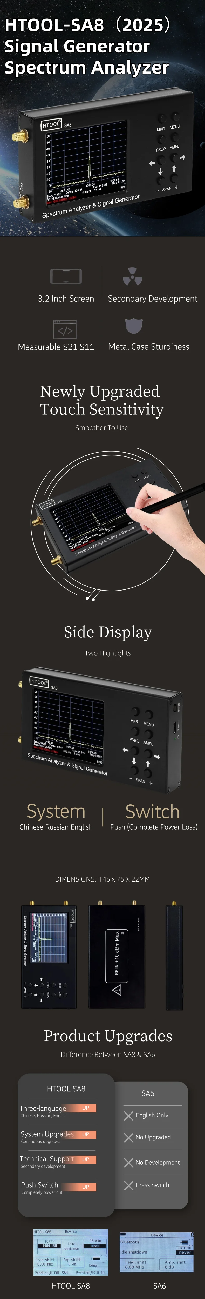 HTOOL SA8 Spectrum Analyzer 35-6200Mhz Handheld Portable RF Wireless Signal Test Instrument