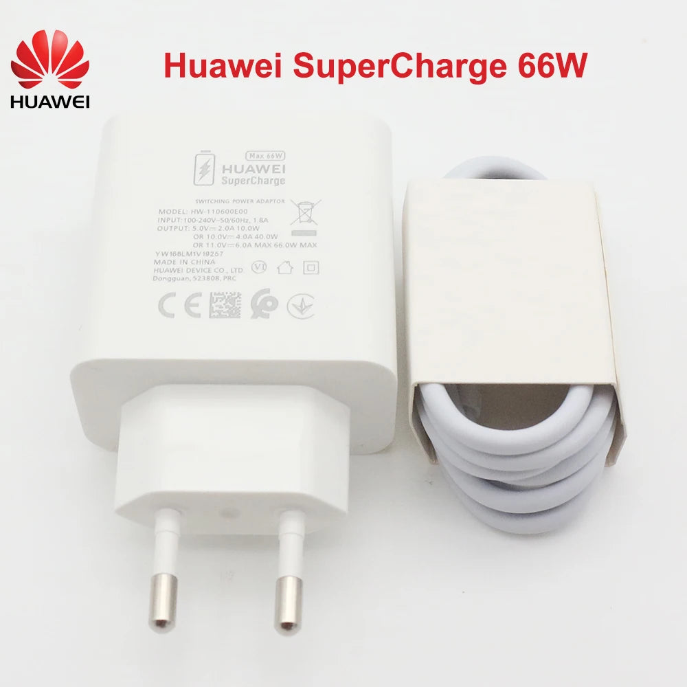 HUAWEI 66W Original Super Charge Quick USB Wall Charger Travel Charge 6A Type C Cable for Mate 50 40 30 P40 Pro Nova8 P 60 50 40