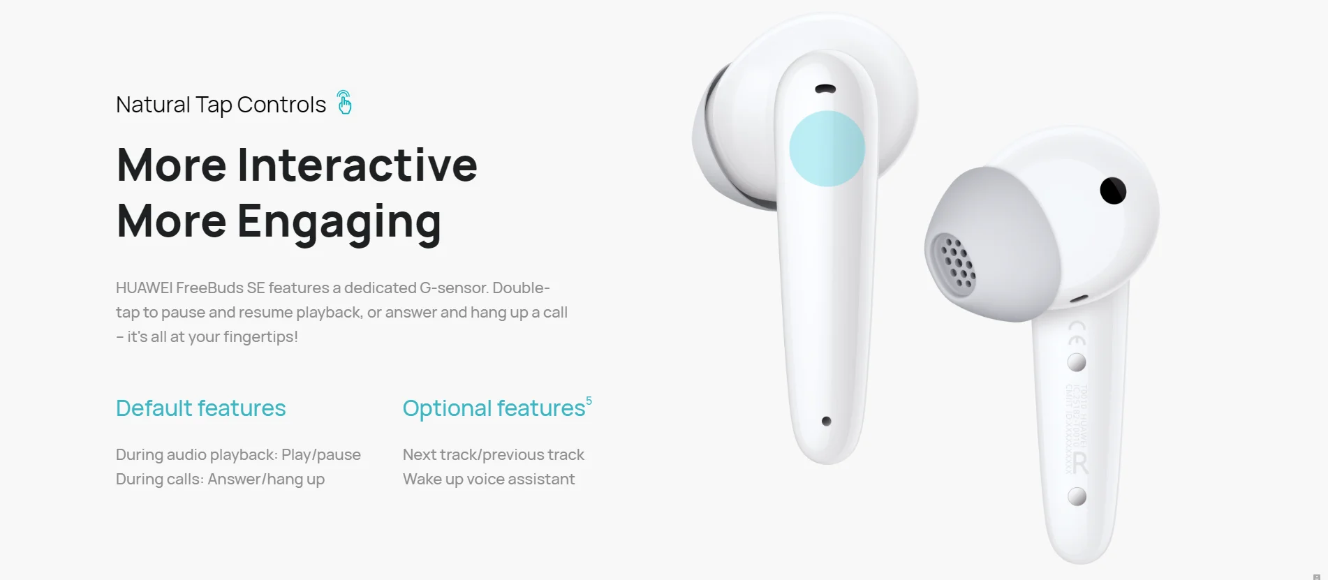 HUAWEI FreeBuds SE features a dedicated G-sensor. Double-tap to pause and resume playback, or answer and hang up a call – it's all at your fingertips!