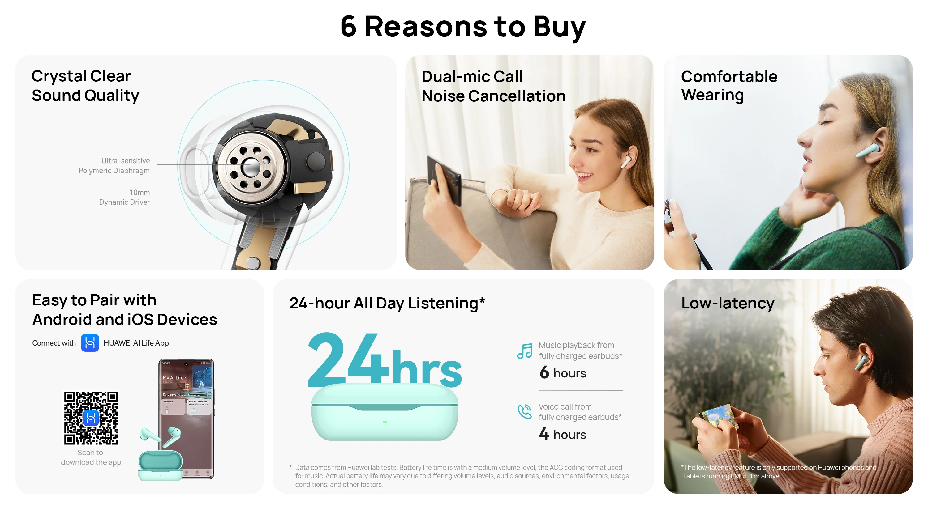 HUAWEI FreeBuds SE comes with a charging case, which offers up to 24 hours of battery life1, for easy listening whenever you want.