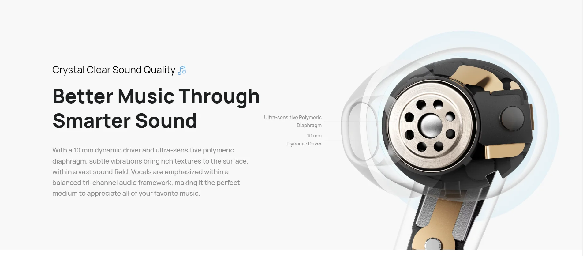 • 10mm Dynamic Sound :The 10mm dynamic sound driver delivers rich, clear, and dynamic sound, enhancing your music listening experience and call quality.