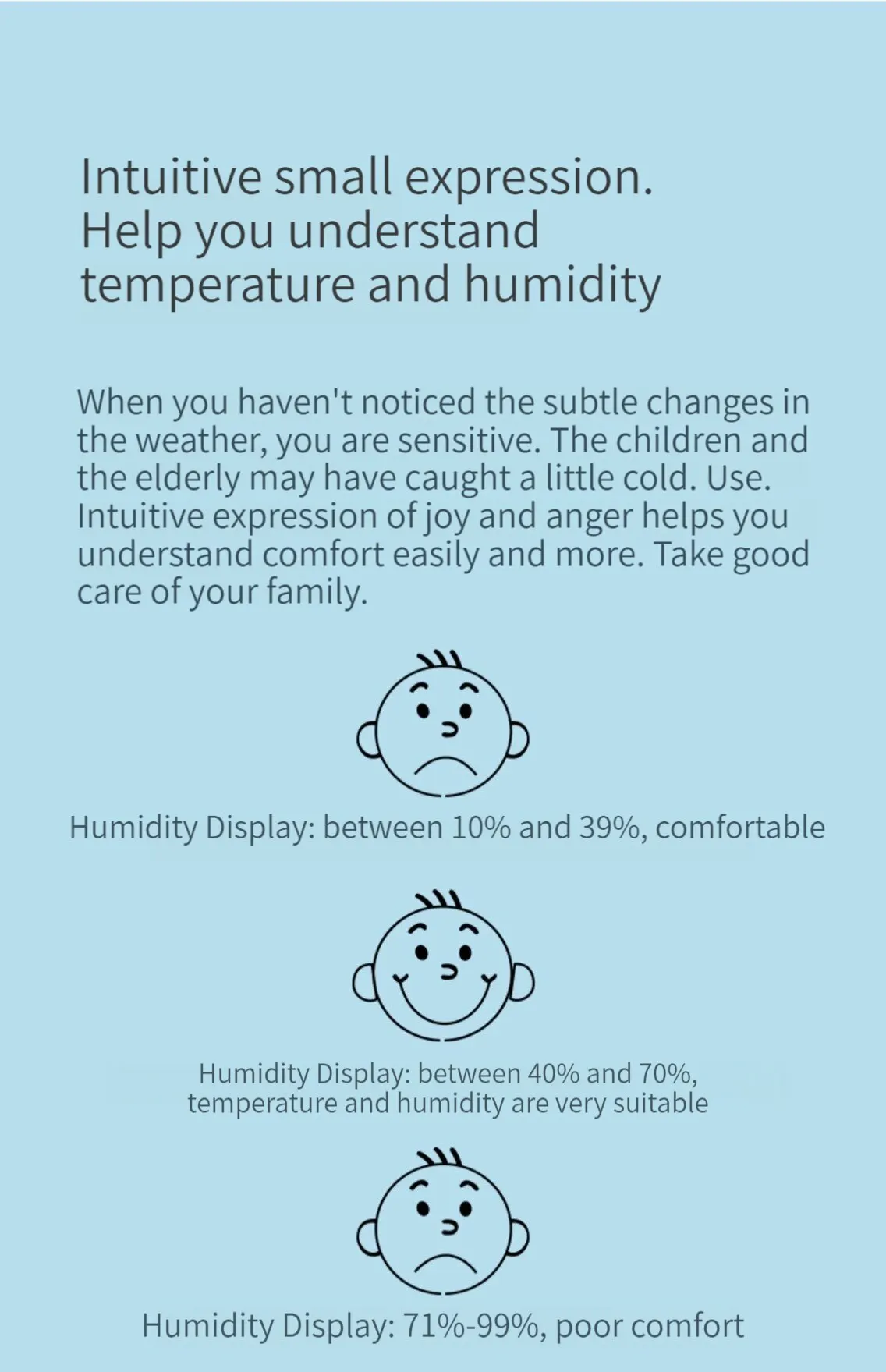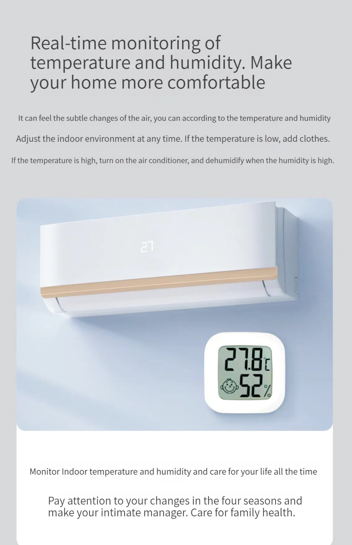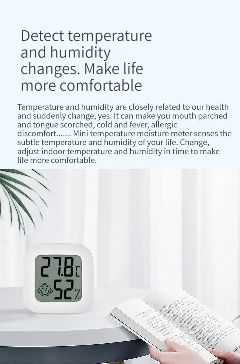 Humidity sensor, indoor thermometer, hygrometer, temperature and humidity monitor, with LCD display screen, displaying Celsius t