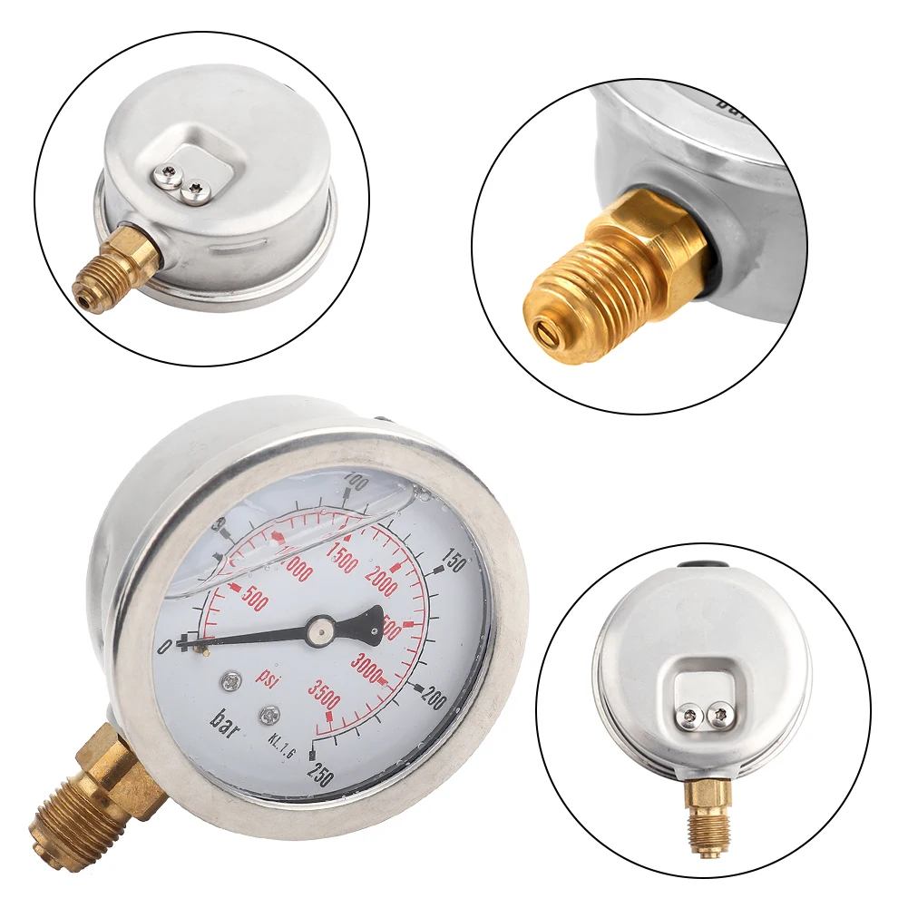 Hydraulic Gauge Hydraulic Pressure Gauge Manometer 0-250Bar 0- 3750PSI G1/4 63mm Hydraulic Water Pressure Gauge Meter