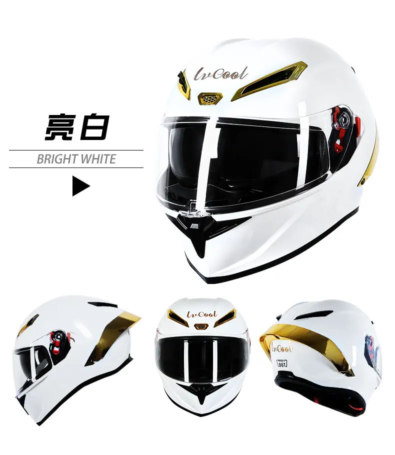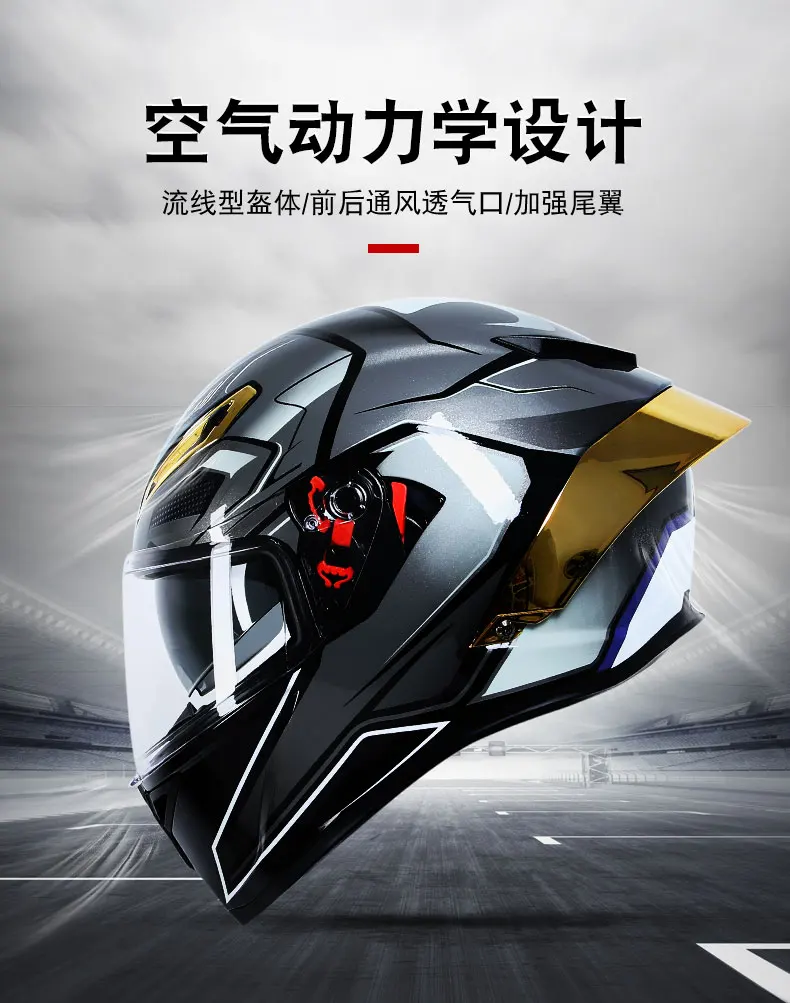 ICE.BEACON Anti fog 3C certification national standard locomotive Motorcycle big tail racing double lens helmet fashion trend pe