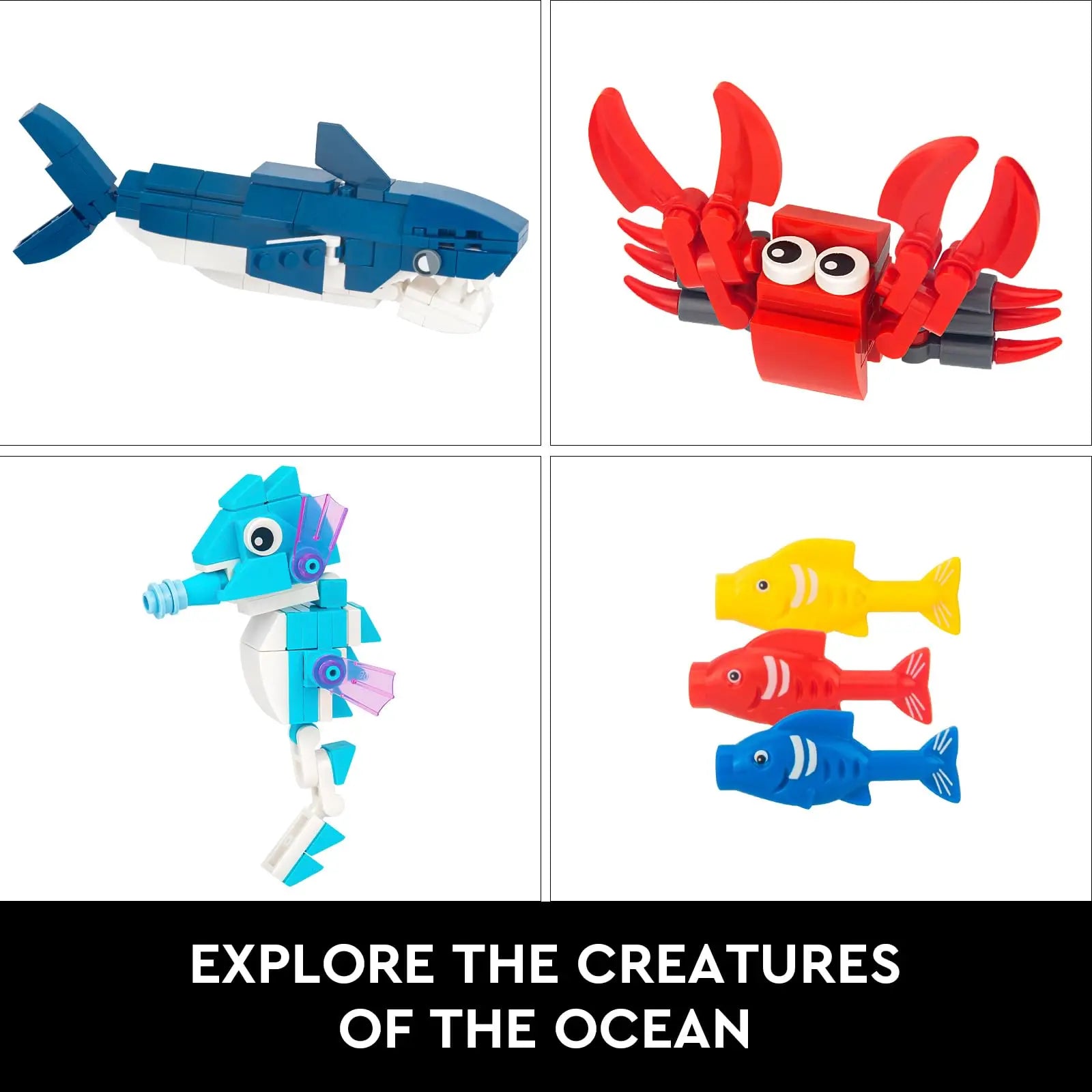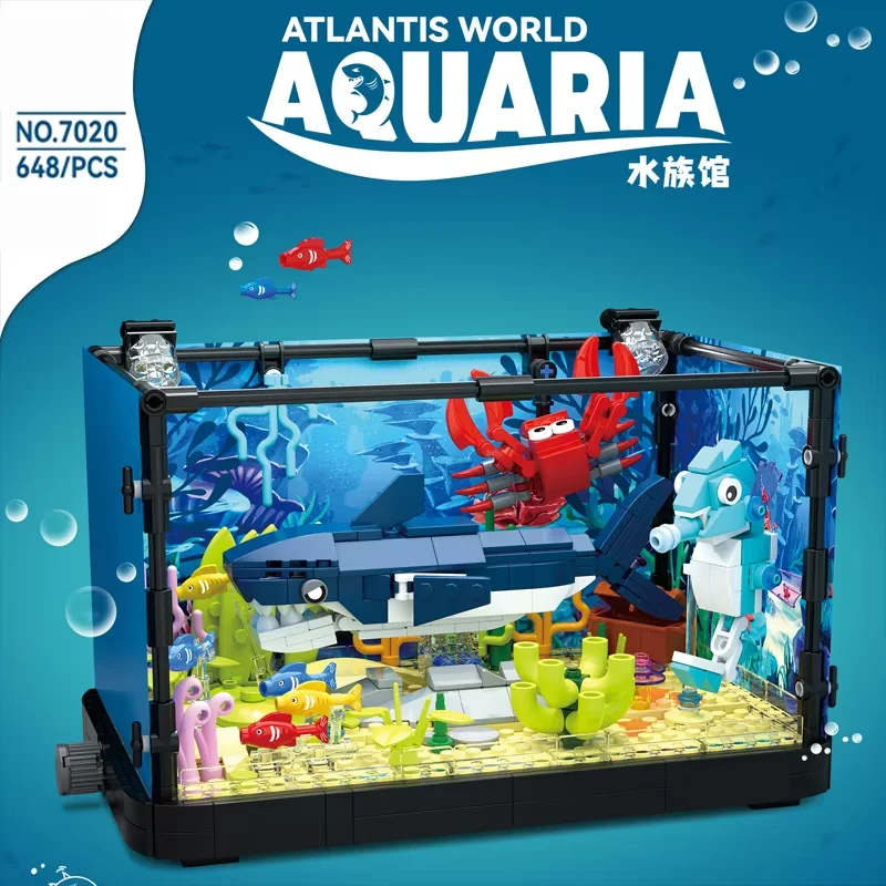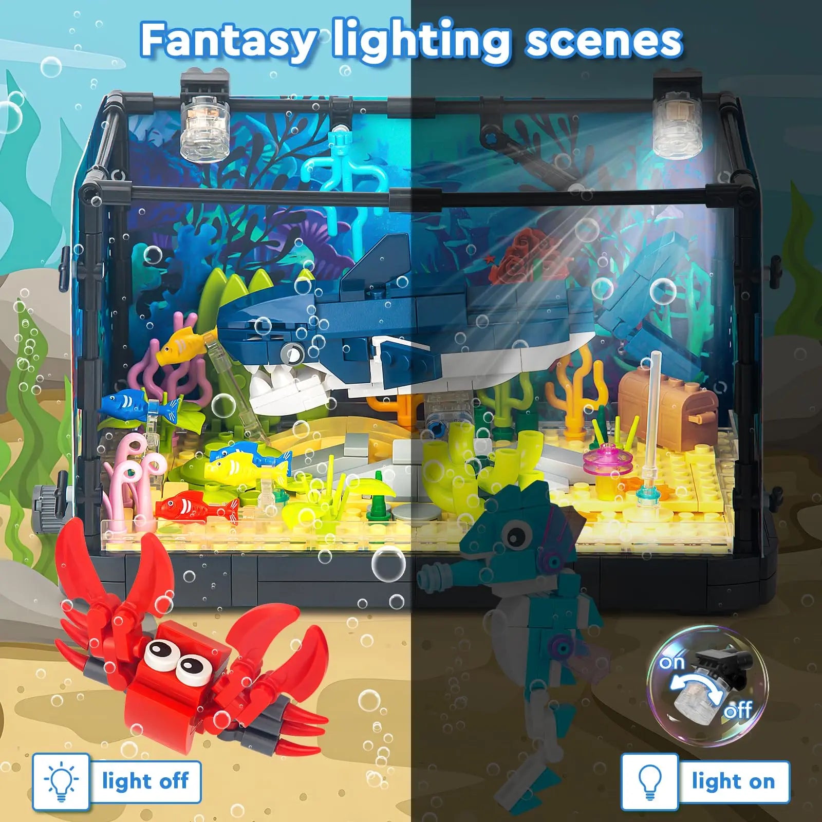 Idea Fish Tank Building Block Set with Light,Aquarium, Marine Life, Jellyfish And Turtle Ecological Tank, Toys For Boys And Girl