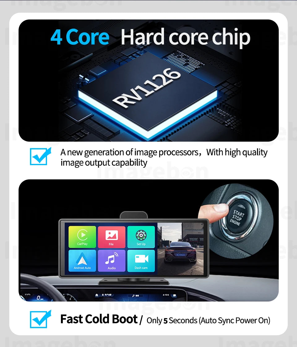 Imagebon 10.26" Wireless CarPlay & Android Auto Dash Cam ADAS 4K DVR Bluetooth Audio AUX GPS Navigation Dashboard Video Recorder