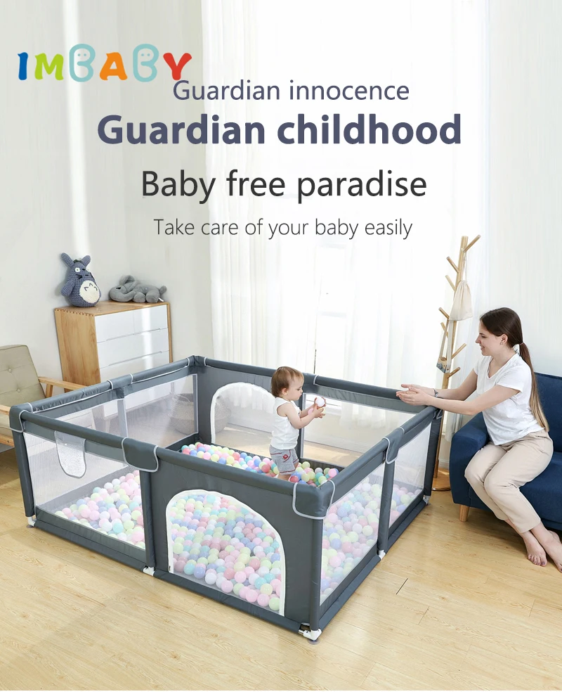 IMBABY 150*180cm Baby Playpens Balls Pool Baby Playground Double Doors Playpen for Children Indoor Safety Barrier Kids Fence
